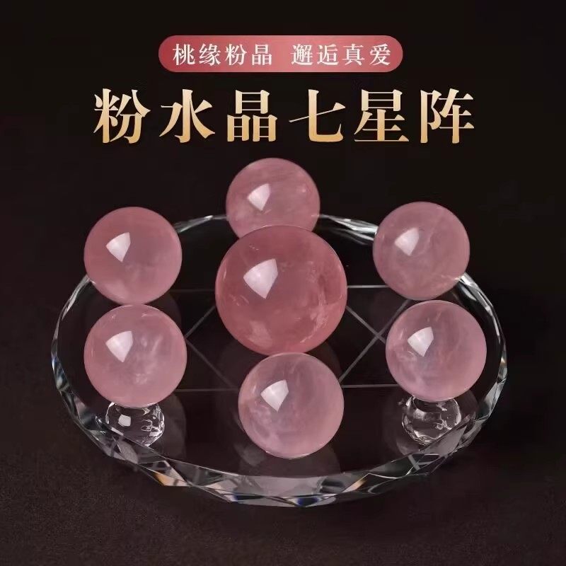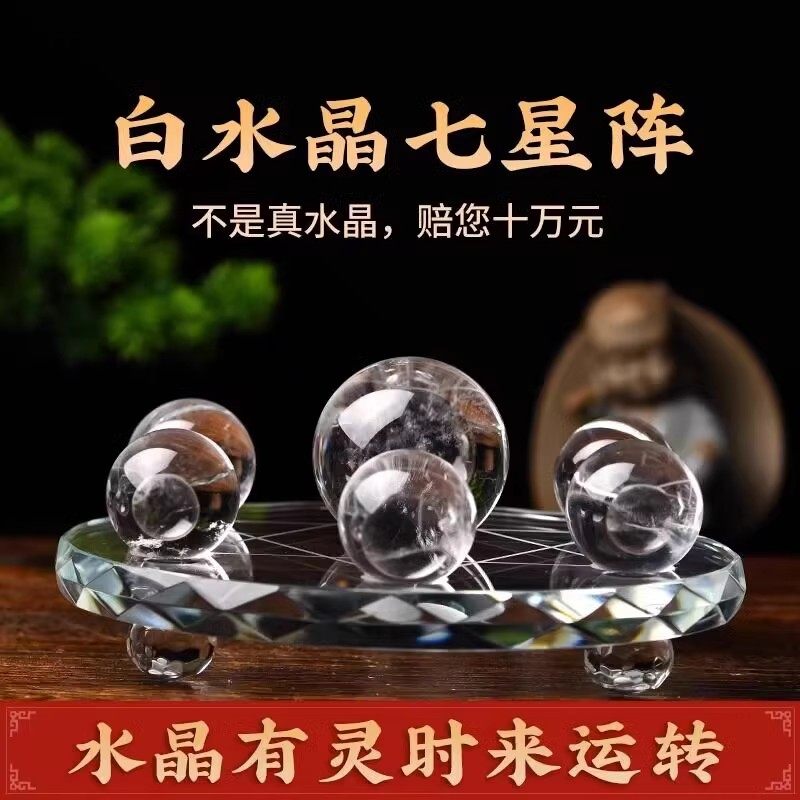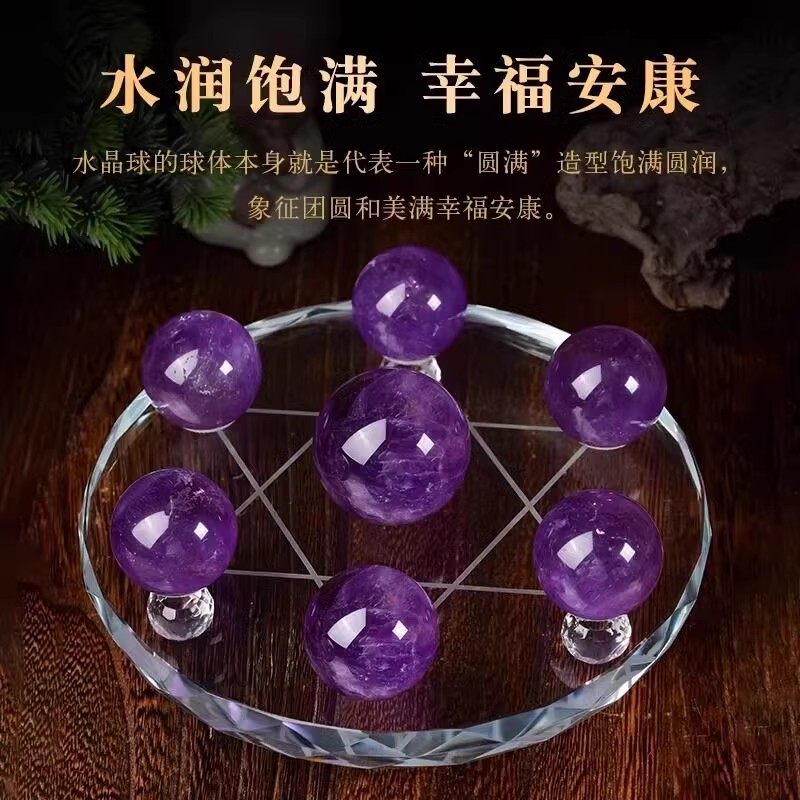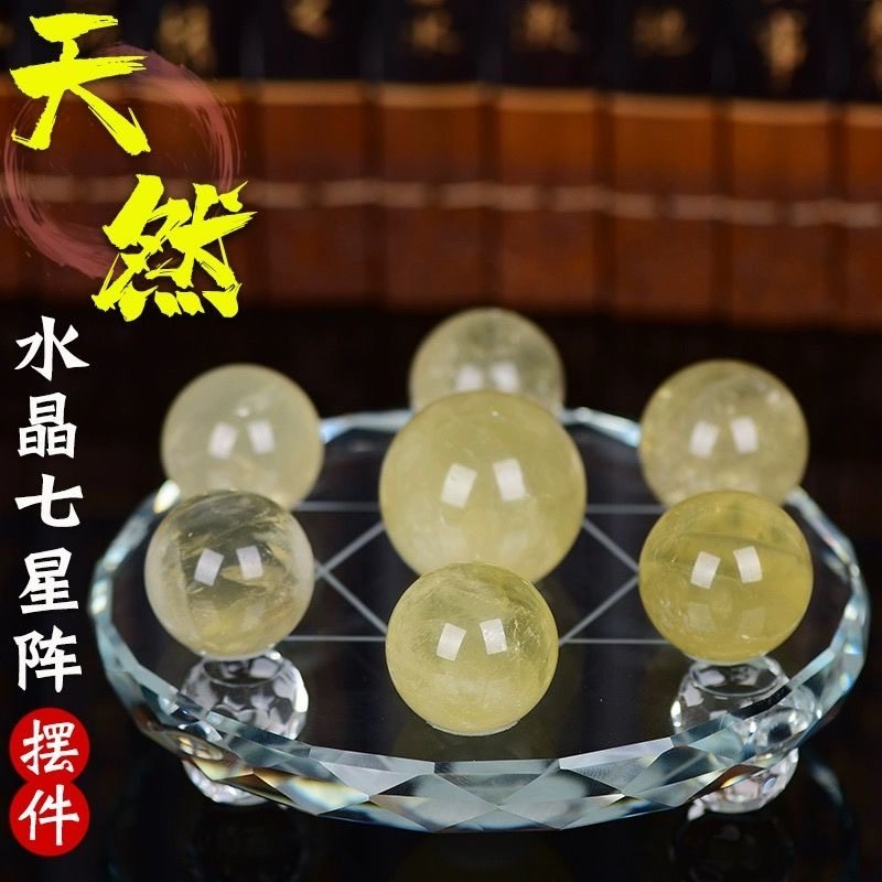天然黄白粉紫色水晶球七星阵水晶摆件聚宝盆家装饰品玄关客厅卧室
