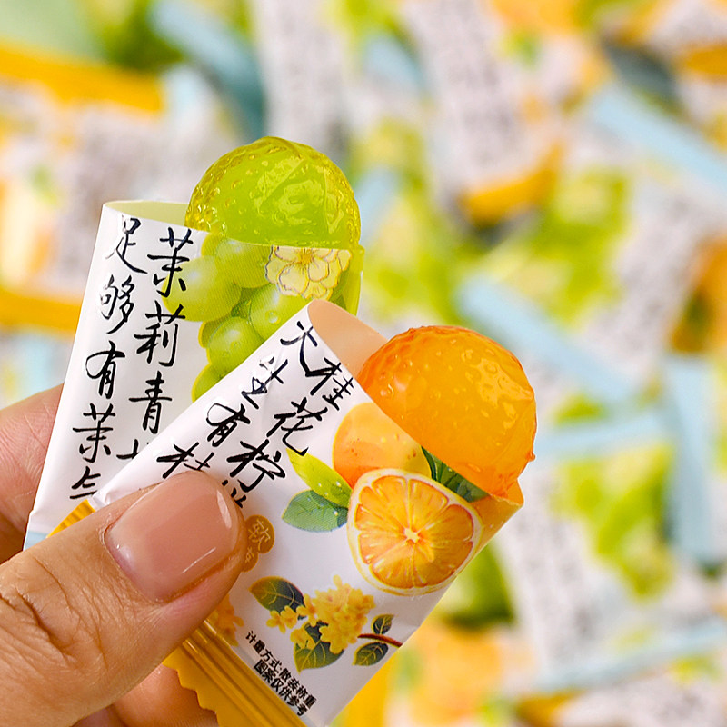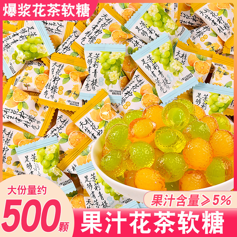 爆浆茉莉青提薄荷花茶软糖小零食网红糖果零食批发水果混合柠檬
