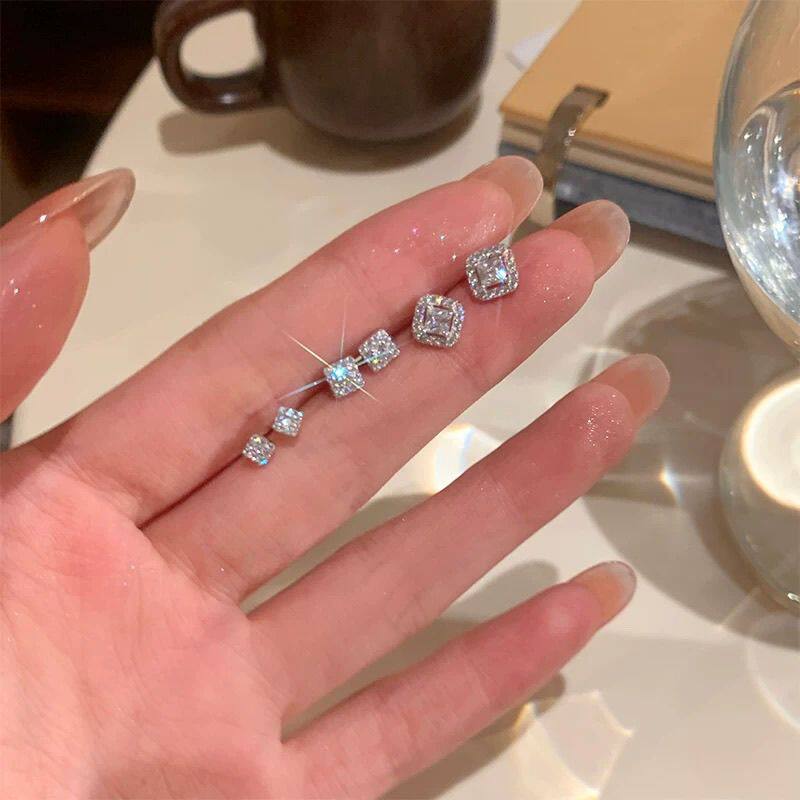 通体镀925银耳钉耳环方糖闪锆养耳洞女轻奢高级感耳饰女睡觉免摘