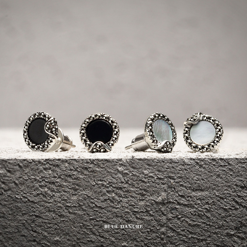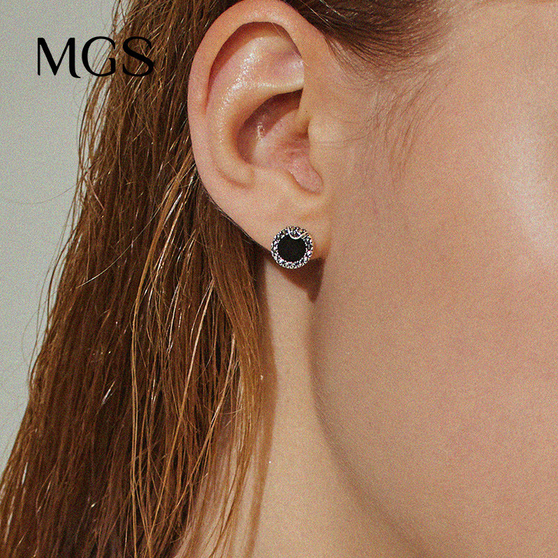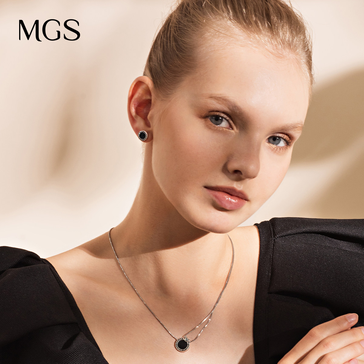 曼古银多瑙河黑玛瑙宝石耳钉S925纯银女士新年礼物时尚百搭耳饰