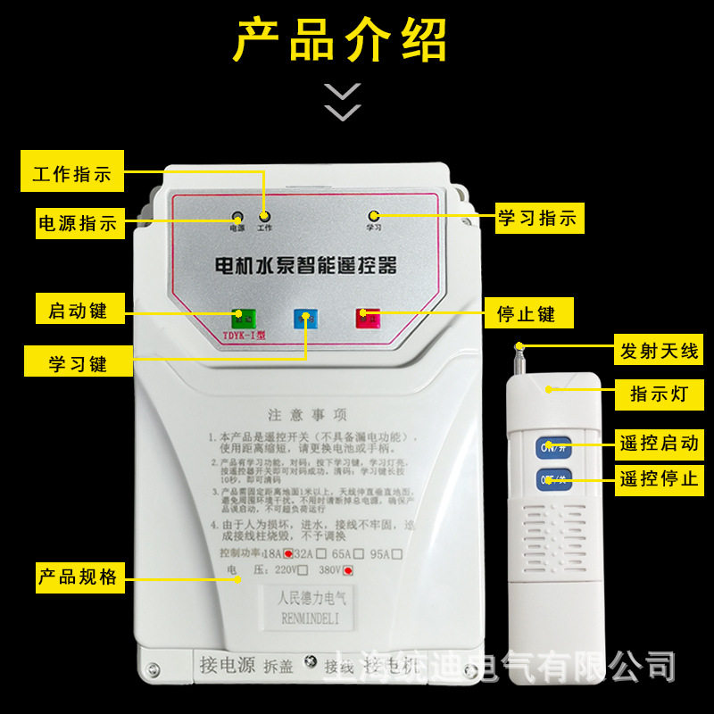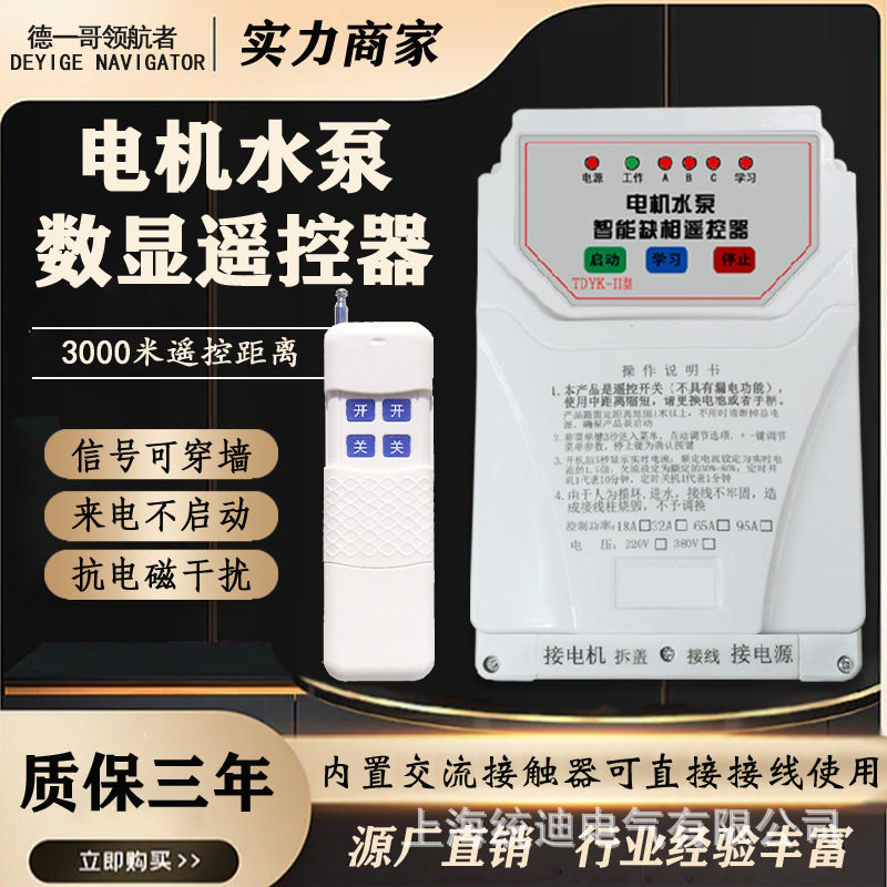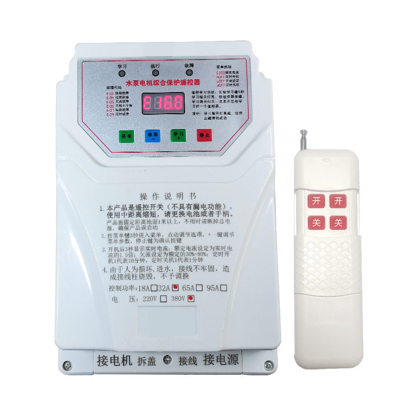 水泵遥控开关380V数显遥控器缺相保护智能开关无线远程水泵遥控器