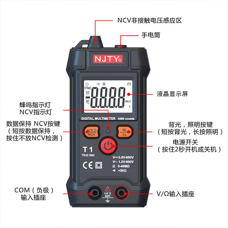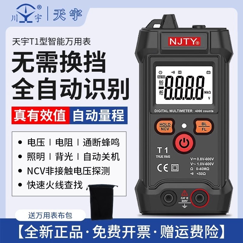 智能t1数字万用表小型全自动维修电工电压电流测量充电换挡数显