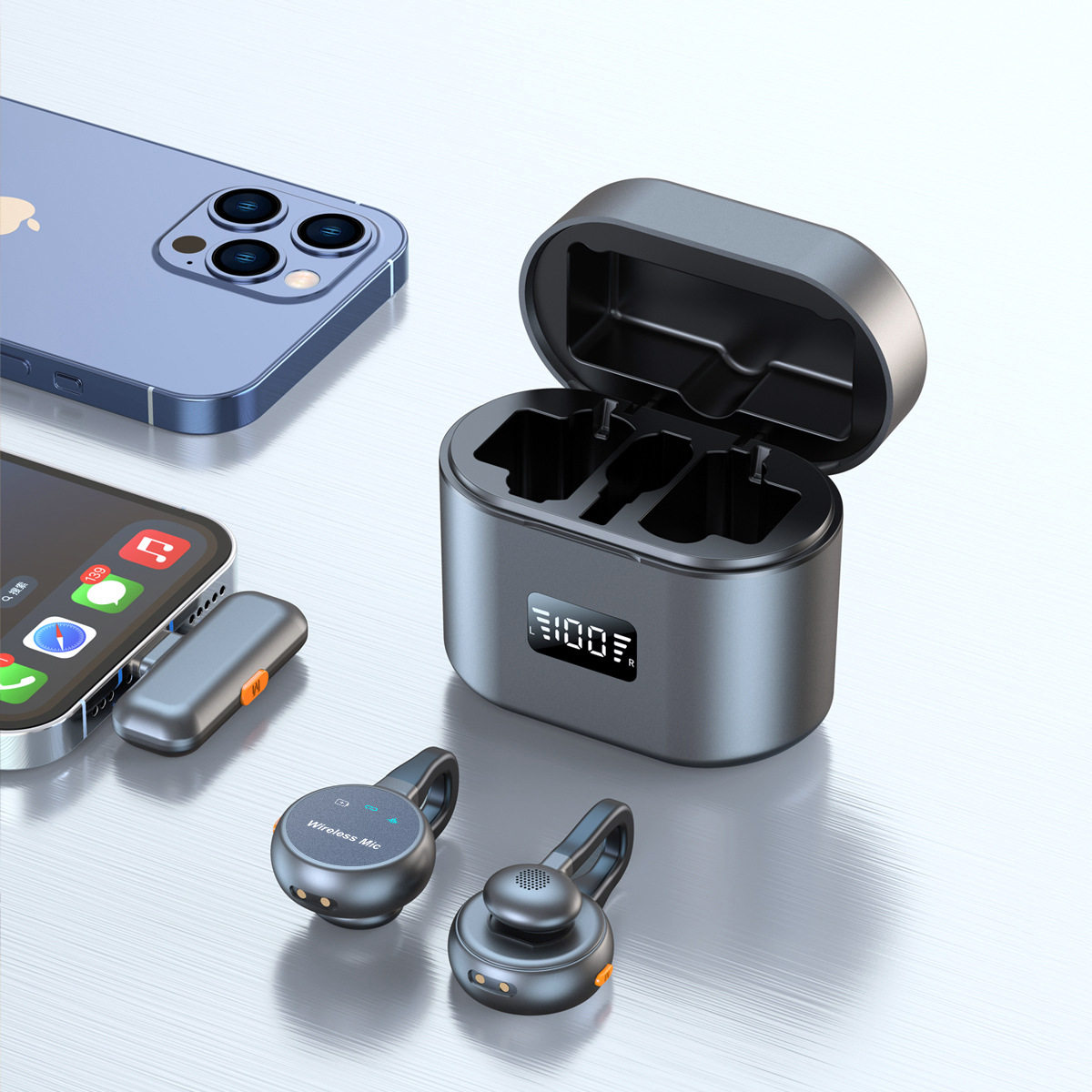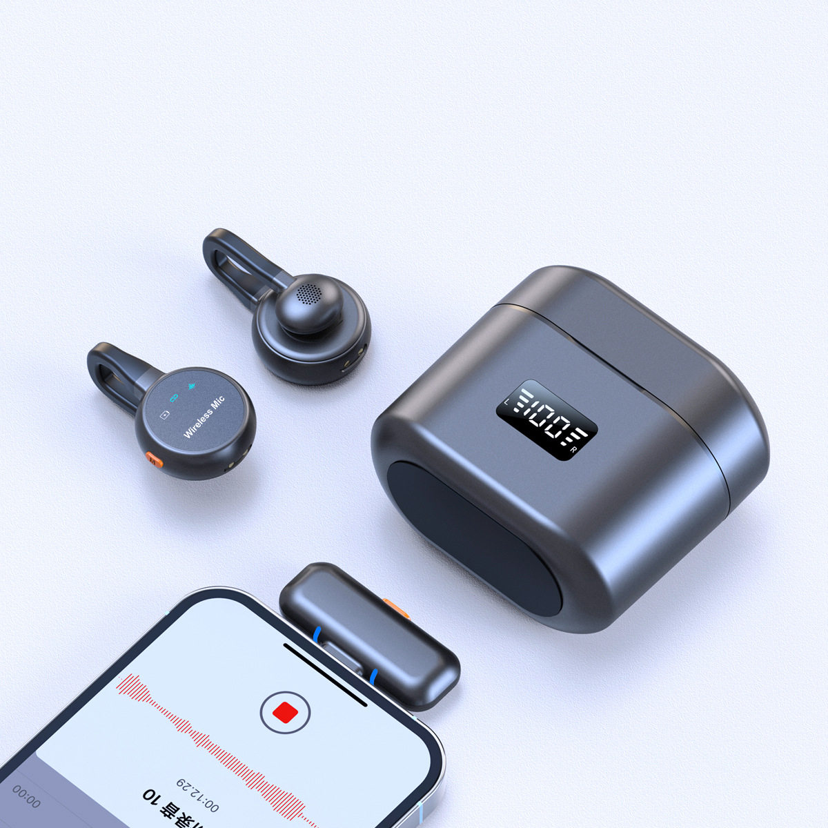 H75无线领夹麦克风一拖二带充电仓抖音直播智能降噪迷你跨境热销