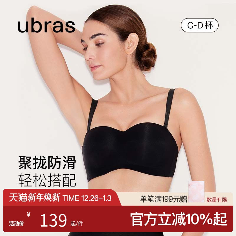 ubras防滑抹胸裹胸大胸显小胸罩无肩带文胸内衣女
