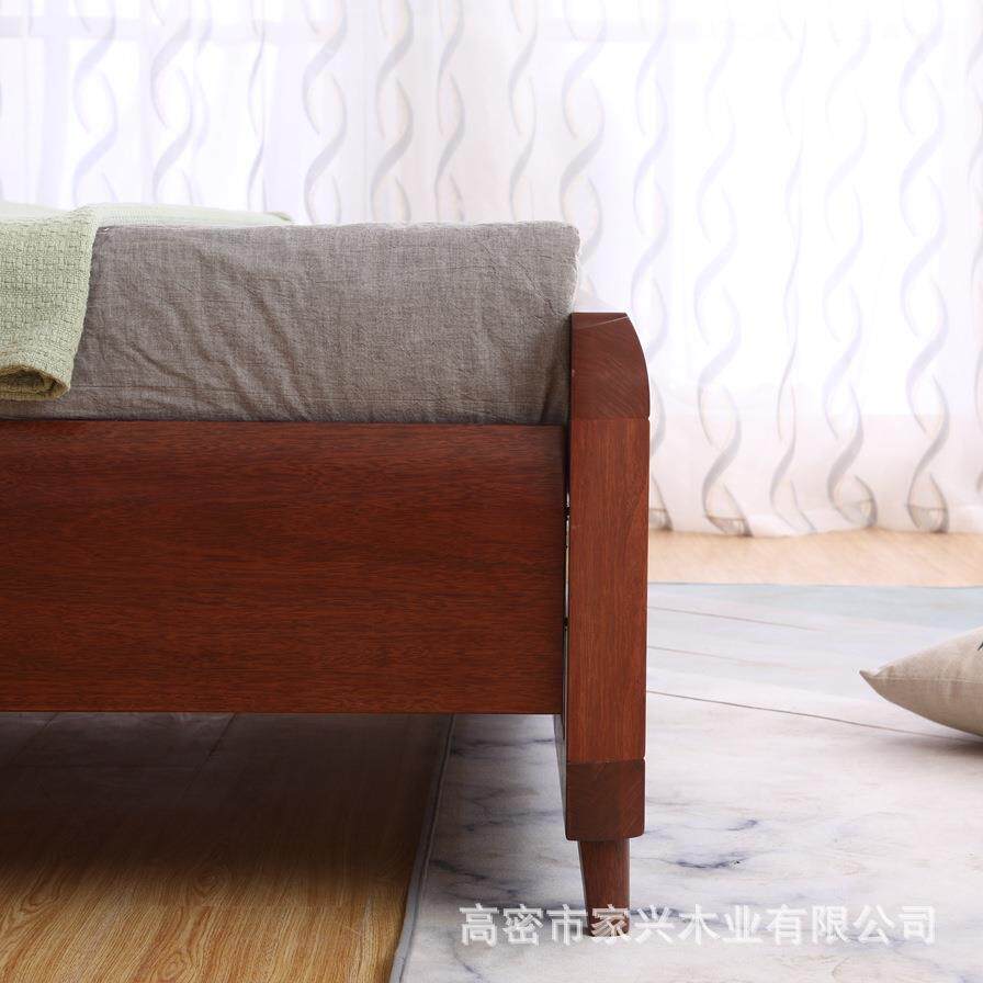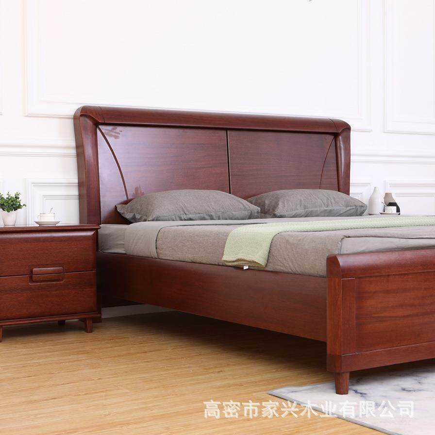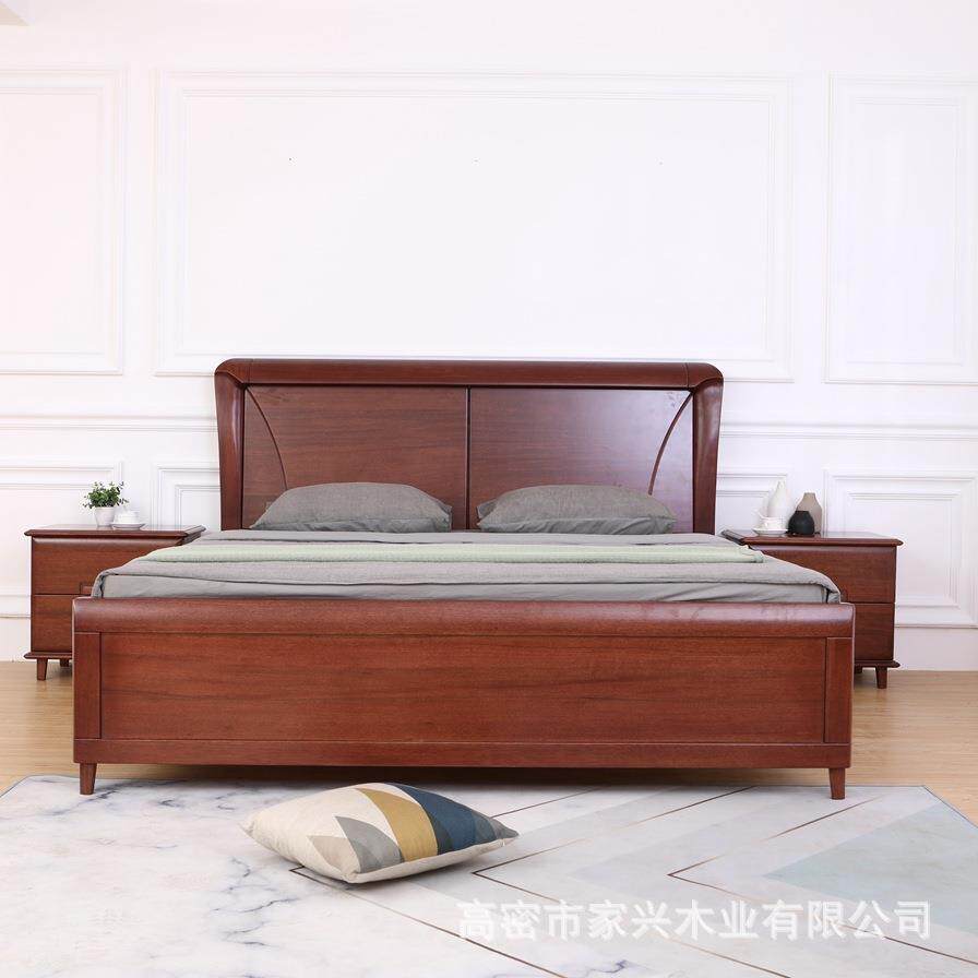 新中式原木床家用卧室布艺实木红橡木床厂家直销支持