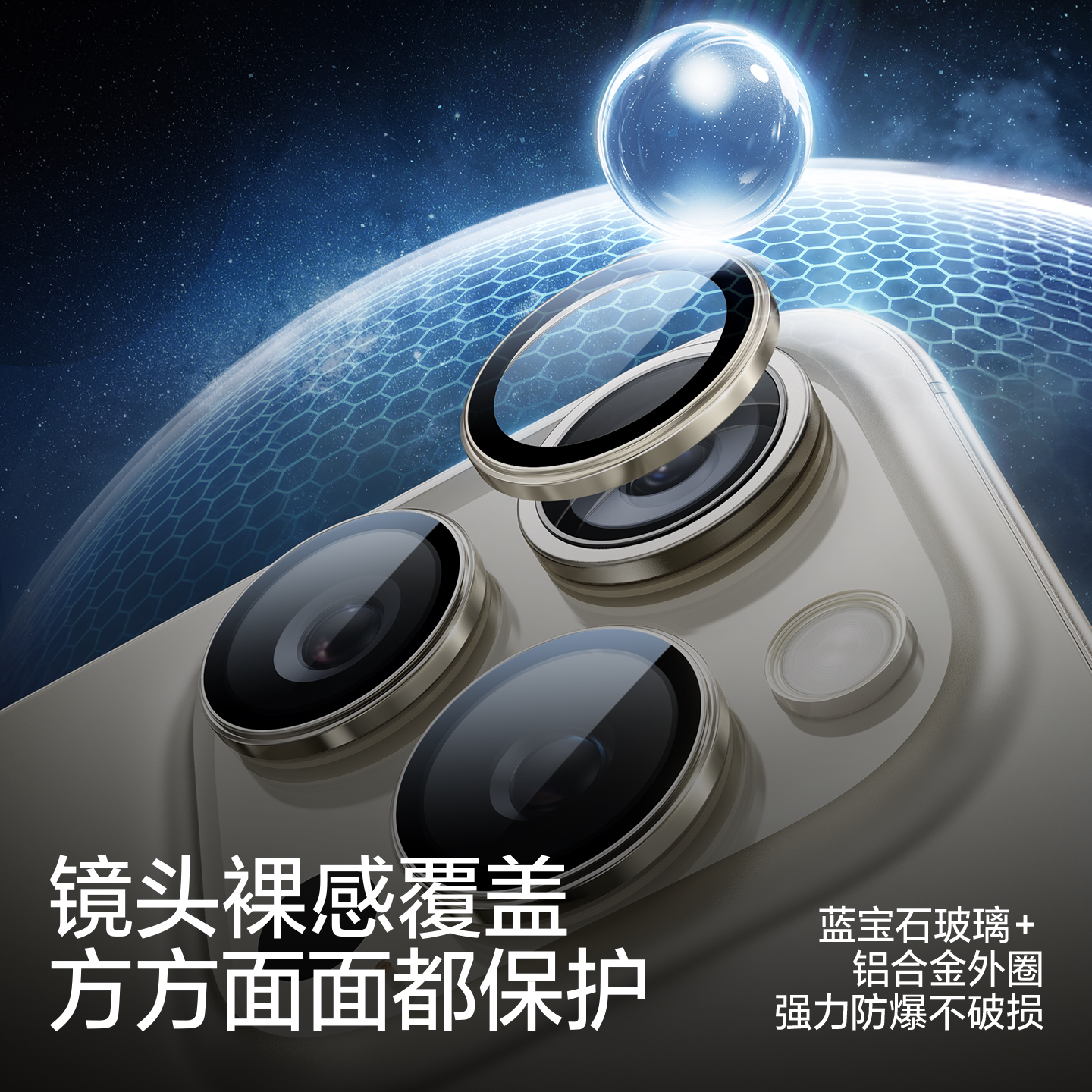 闪魔适用iPhone17ProMax蓝宝石镜头膜16Pro手机镜头保护膜15Pro新款后摄像头15PM玻璃高清por全包抗摔保护贴