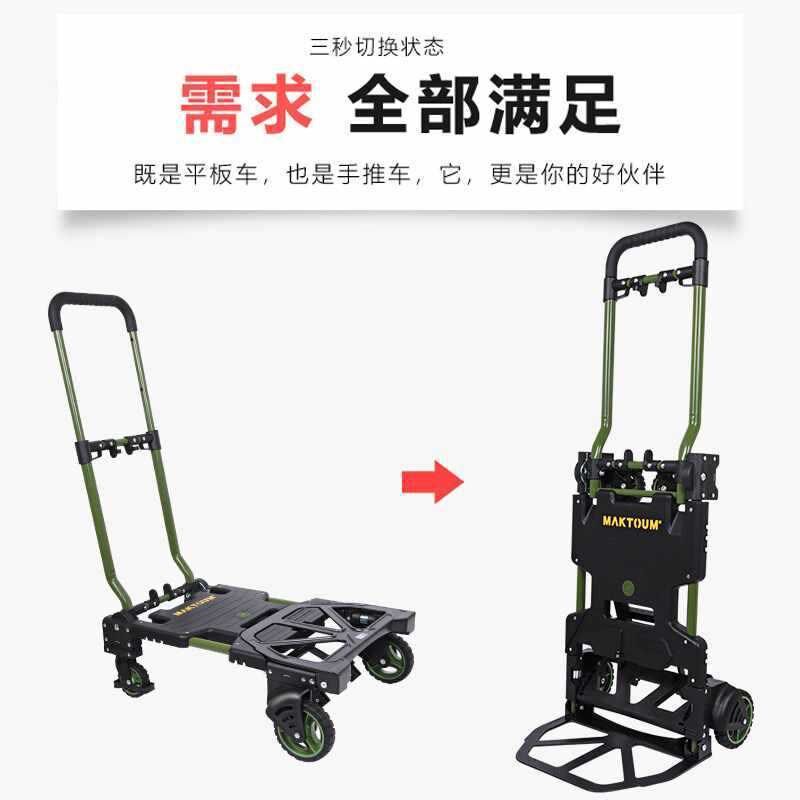折叠便携平板车搬运车家用静音手拉车小推车拉货四轮拖车行李车