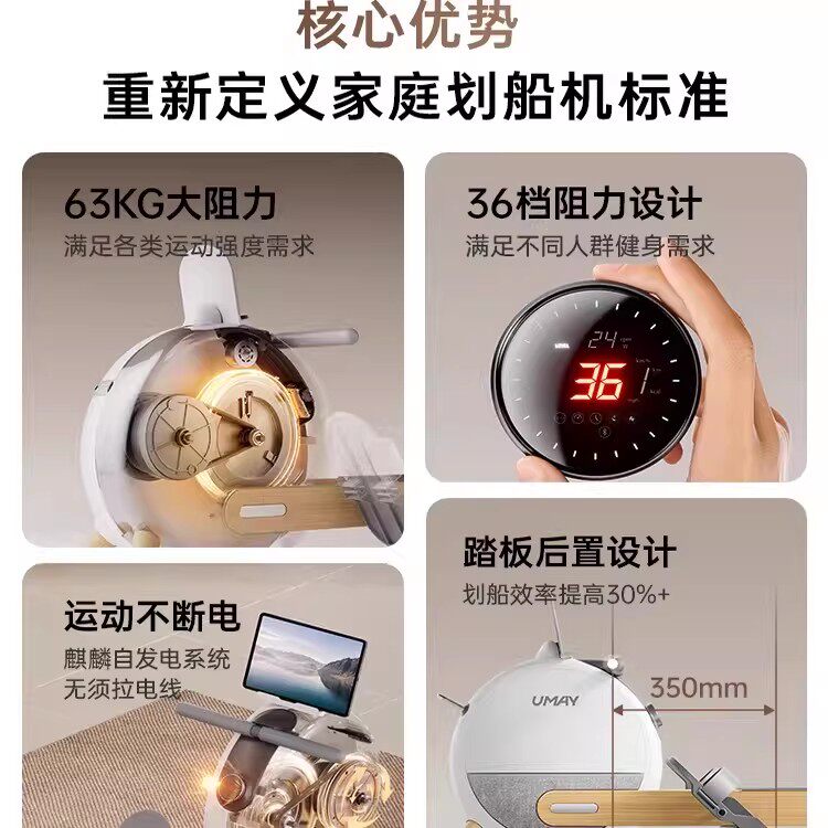 佑美划船机家用健身器材燃脂磁阻静音综合训练器小型智能滑船器R6