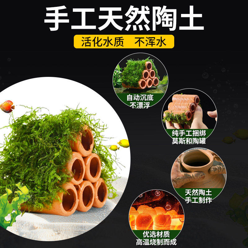 莫斯躲避屋陶罐装饰水草鱼缸造景植物鱼虾躲避洞虾屋摆件小鱼繁殖