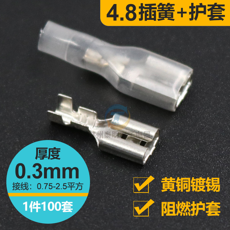 4.8插簧端子护套 铜接插件插片母头插拔式冷压接线100套插簧电线