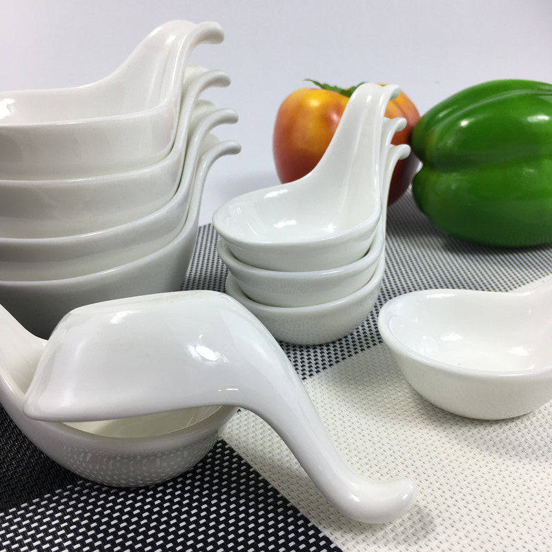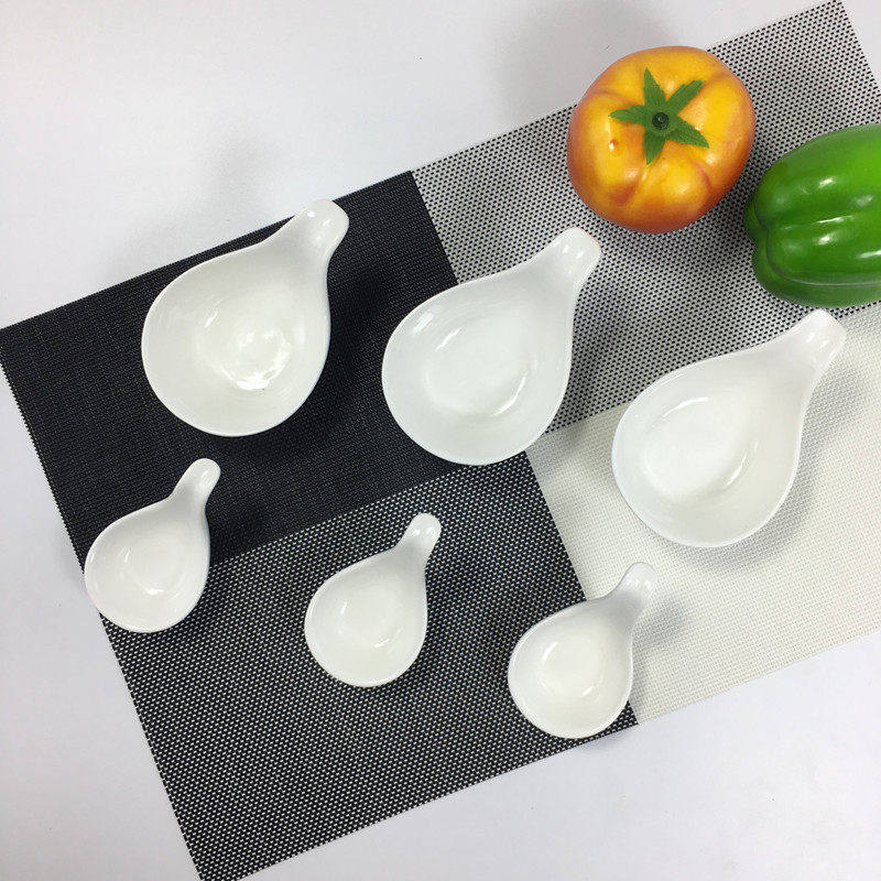 纯白陶瓷创意沙拉碗碟西式酱料碗水滴盅酒店西餐调料碟 鱼子酱勺