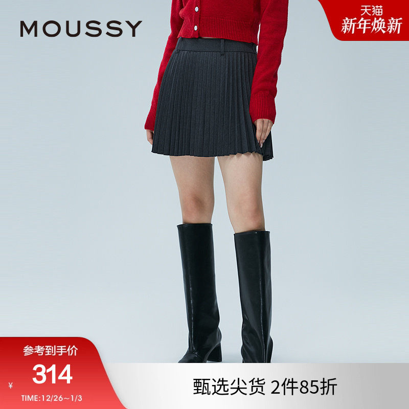 moussy 冬季新品甜美学院风A字百褶裙半身裙女028HAZ30-1101