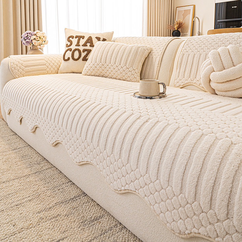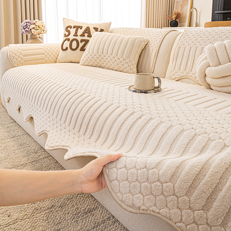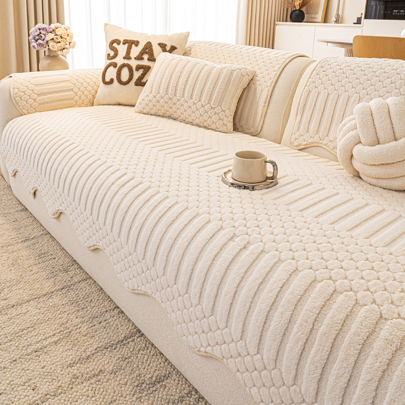 异形毛绒沙发垫冬2025新款加厚沙发坐垫子高级感防滑保暖座垫奶油