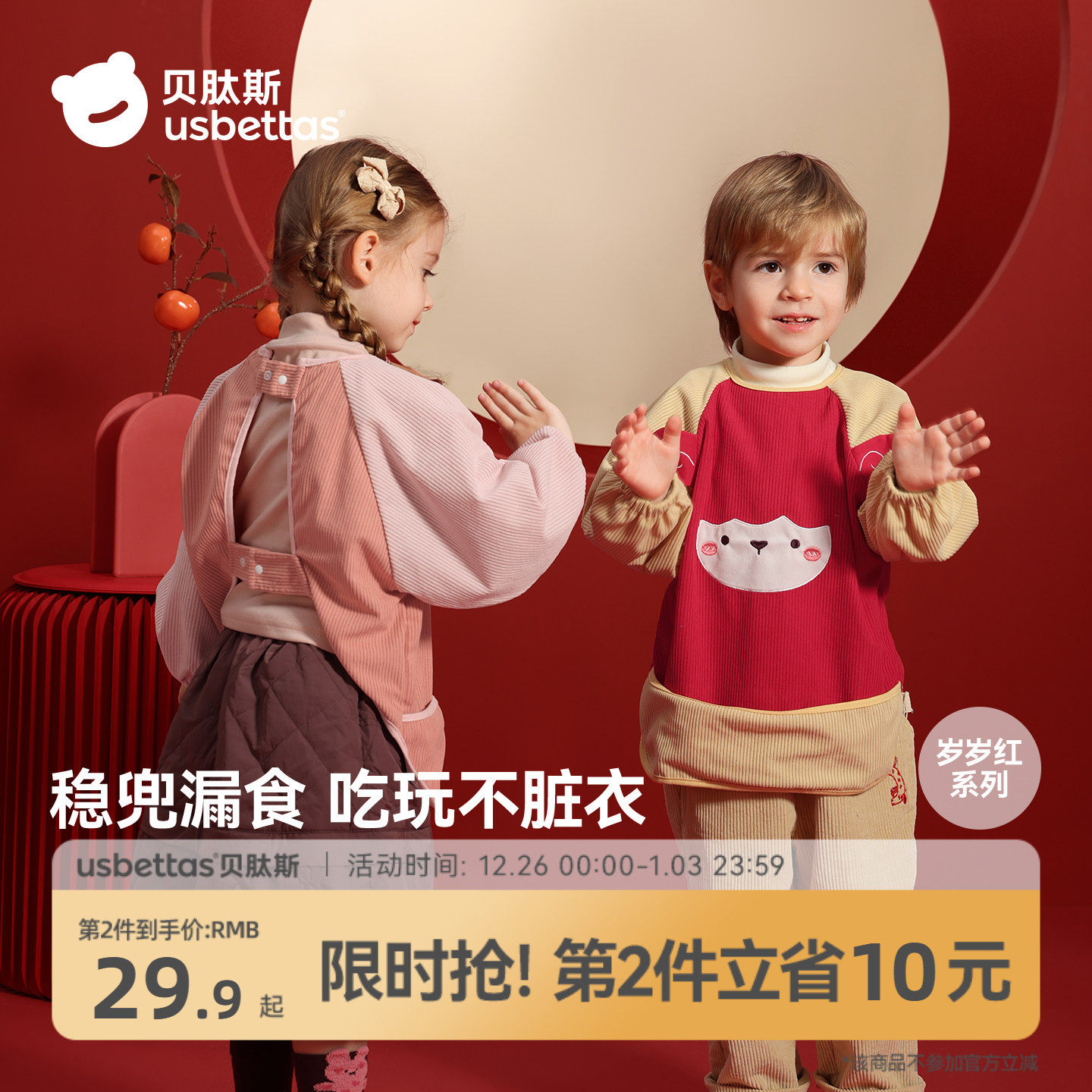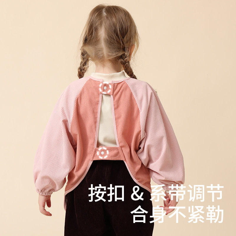 贝肽斯婴儿罩衣秋冬款儿童吃饭防水隔脏反穿衣男女宝宝灯芯绒围兜