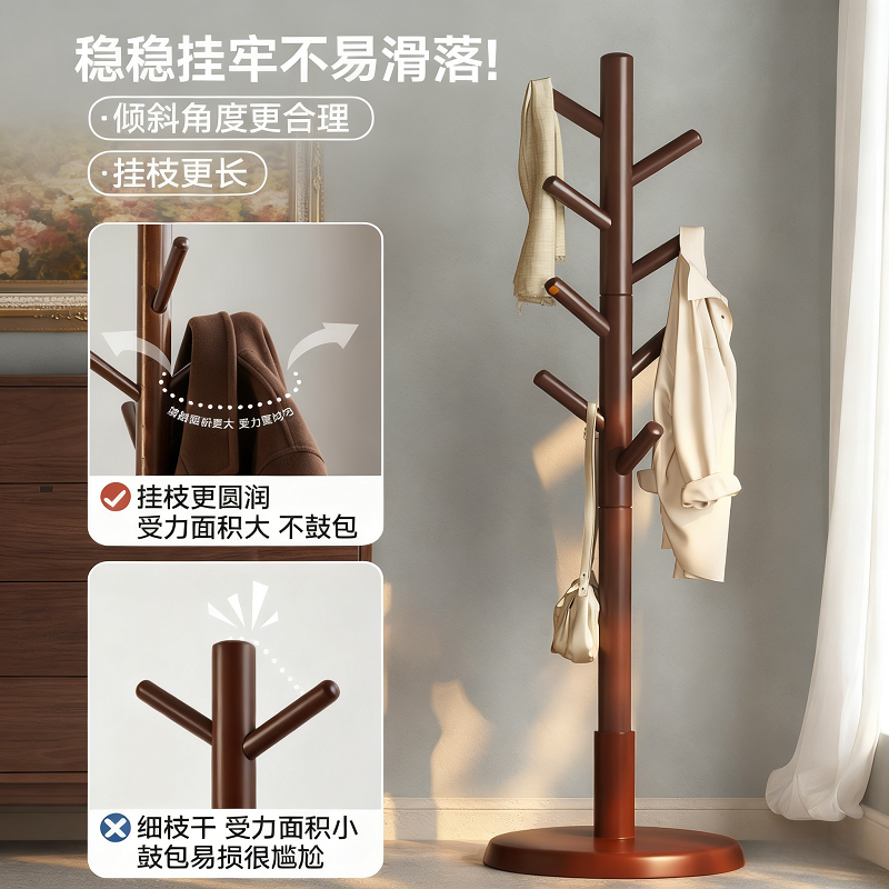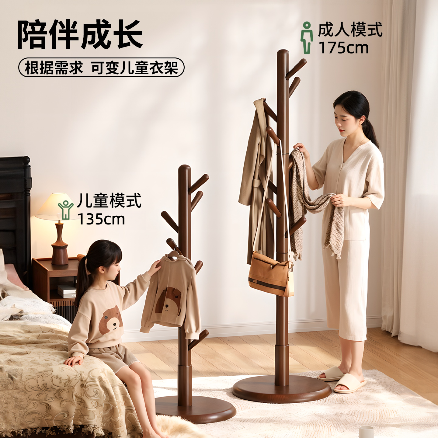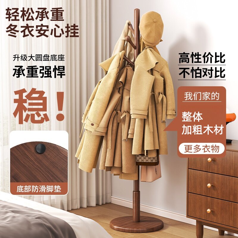 实木衣架落地衣帽架卧室家用挂衣架简易立式榉木挂衣杆室内挂包架