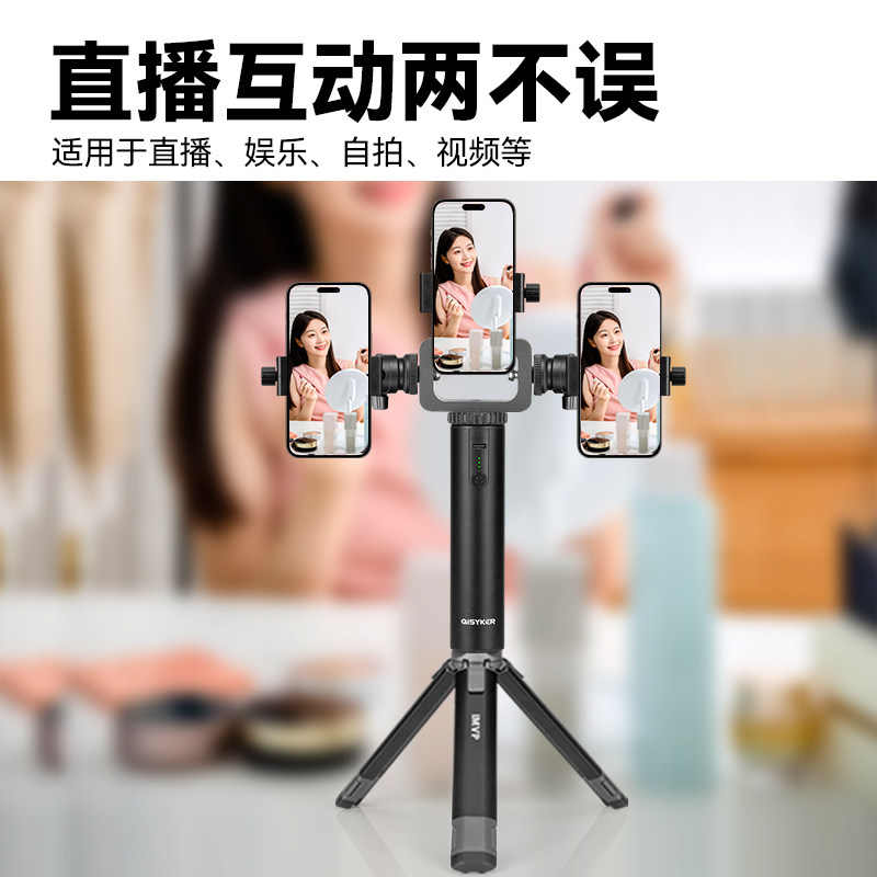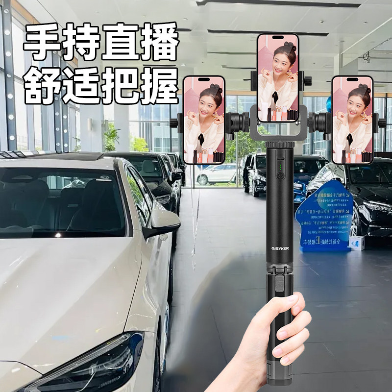 三机位手机架双手机直播支架汽车4S店车展抖音直播多机位补光灯拍摄手持三脚架金属户外内置电源充电宝手柄