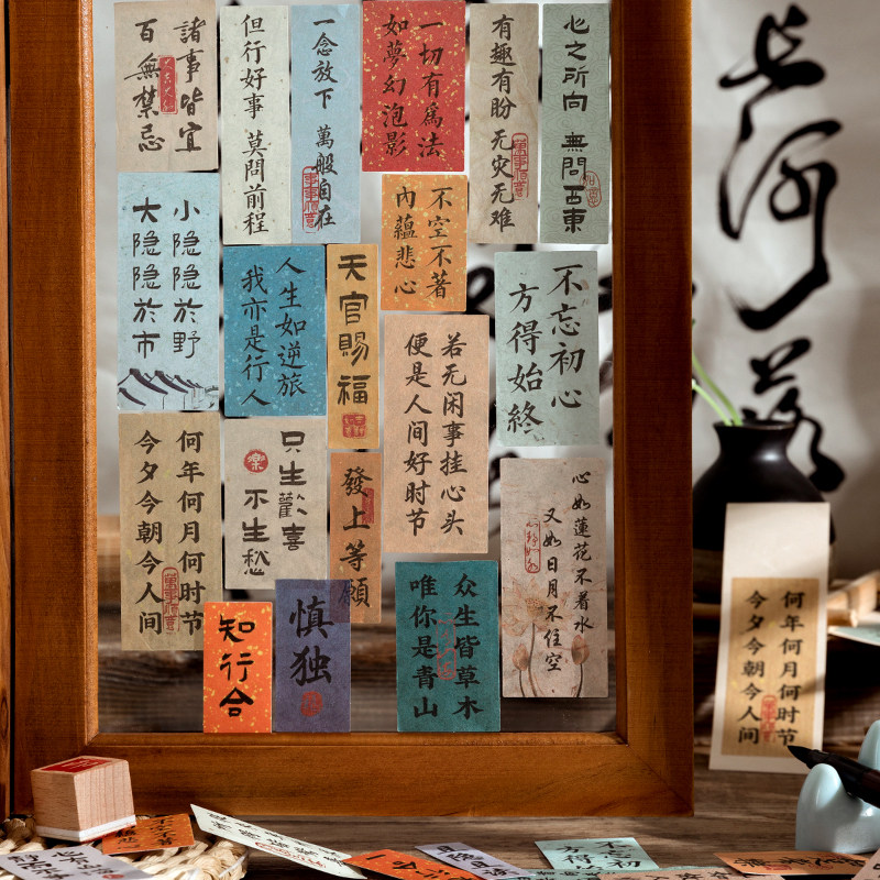 中国古风书法贴画手账装饰素材笔记本电脑手机壳iPad吉他水杯贴纸