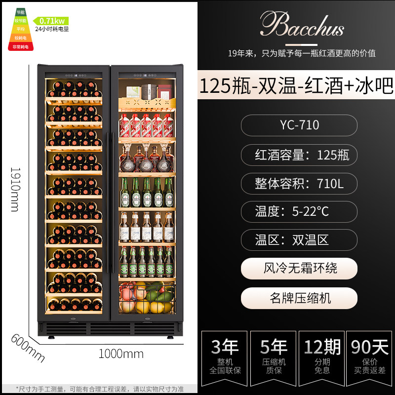 Bacchus/芭克斯YC-710恒温红酒柜家用商用双温风冷一体双门250瓶