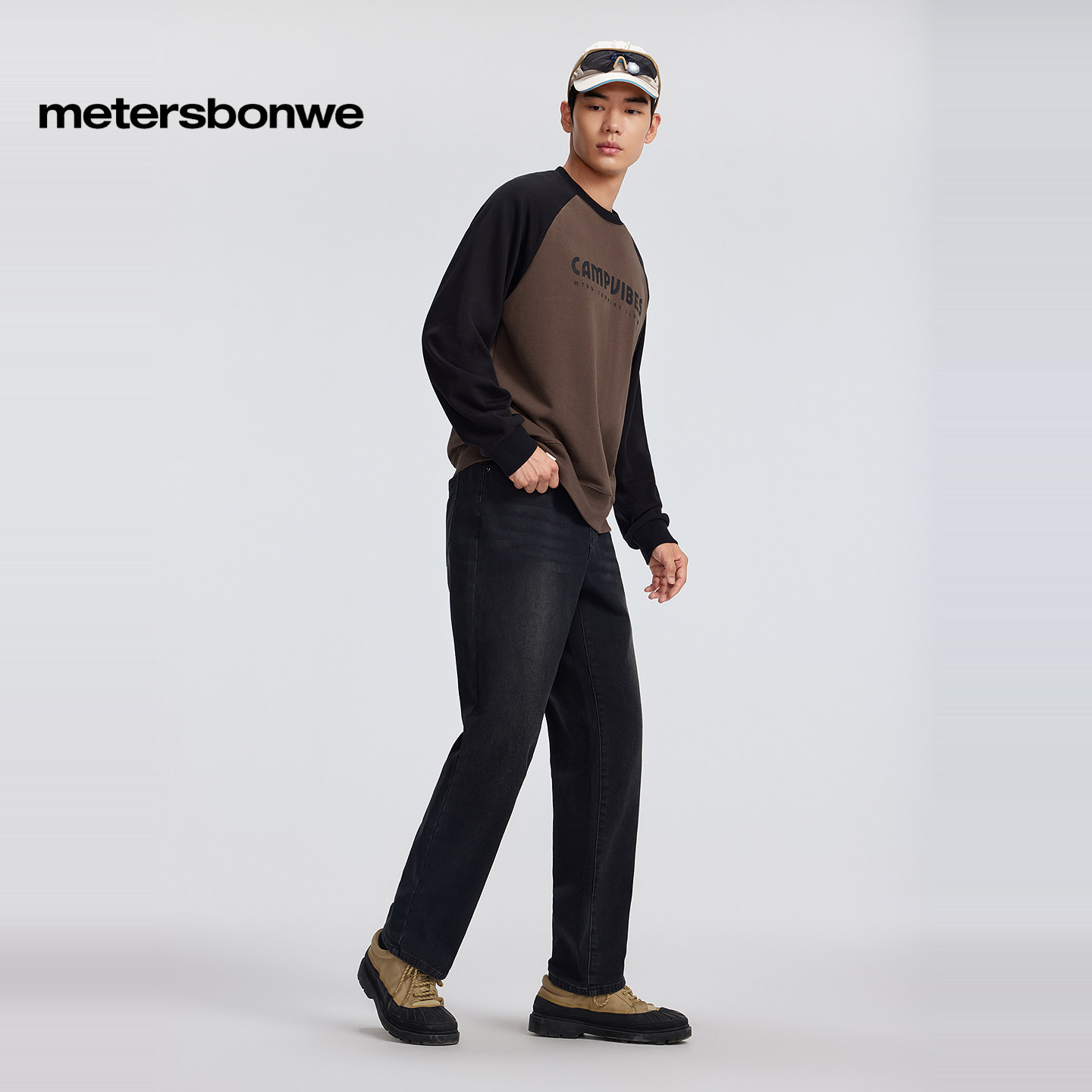 森马牛仔裤男猫须做旧复古宽松直筒裤2025秋冬新款长裤子经典质感