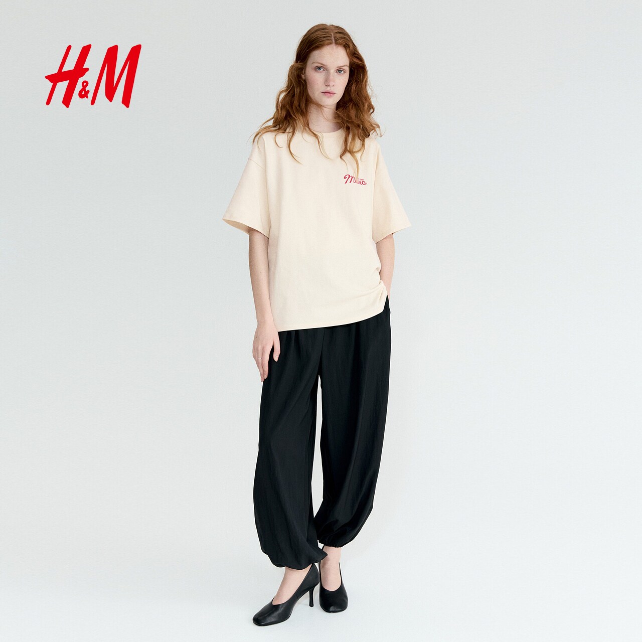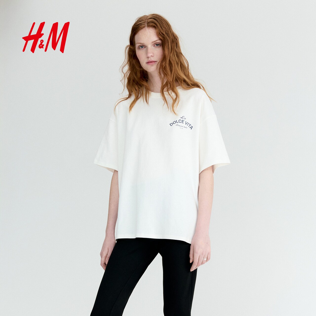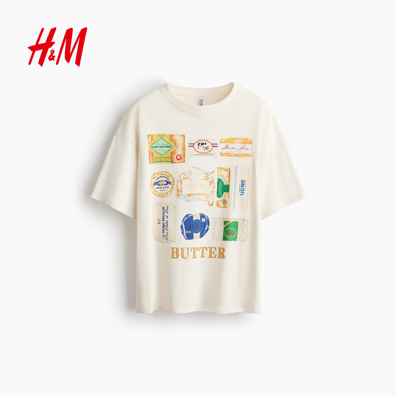 HM女装T恤2026春季新款印花多巴胺穿搭圆领大廓形短袖上衣1314592