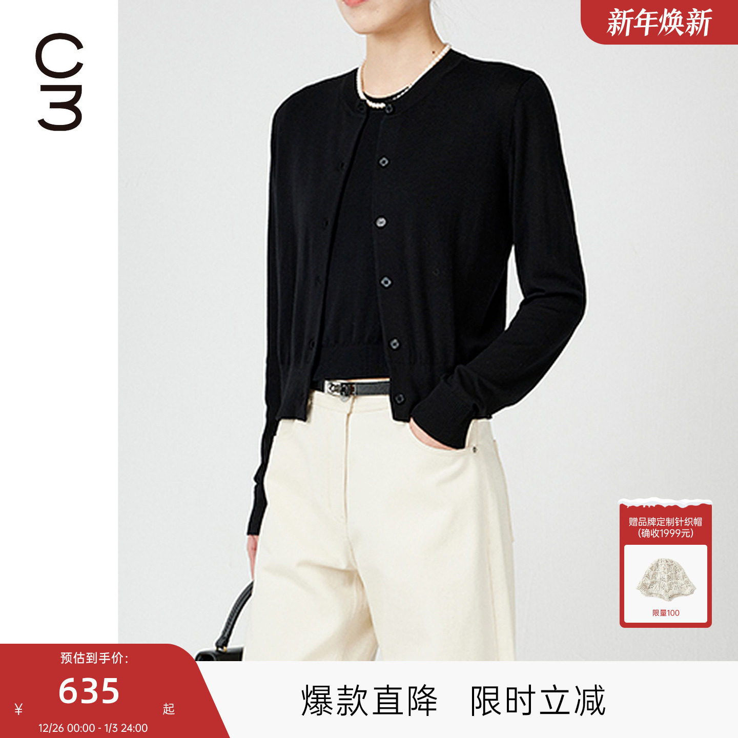 MISSCOCOON可可尼C3系列圆领衫女2025年秋款简约风针织开衫外套