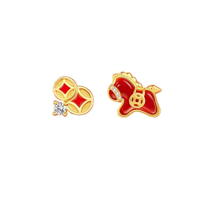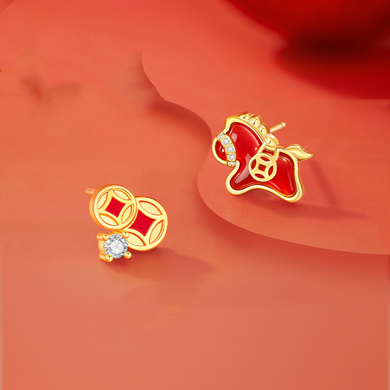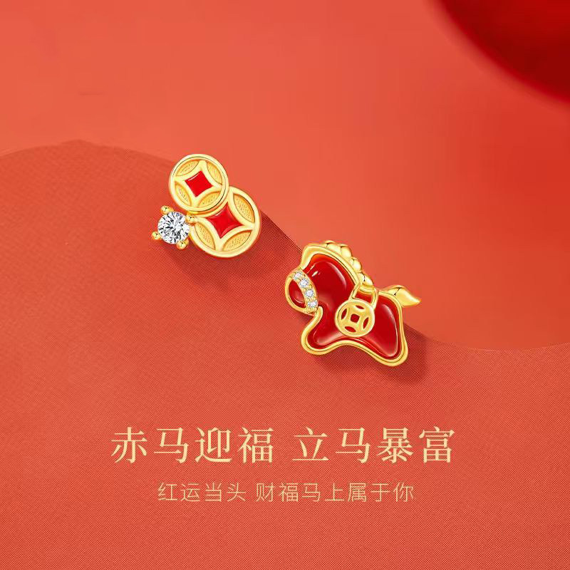 新年马年铜钱小马耳钉女轻奢高级感耳环小众精致百搭本命年耳饰