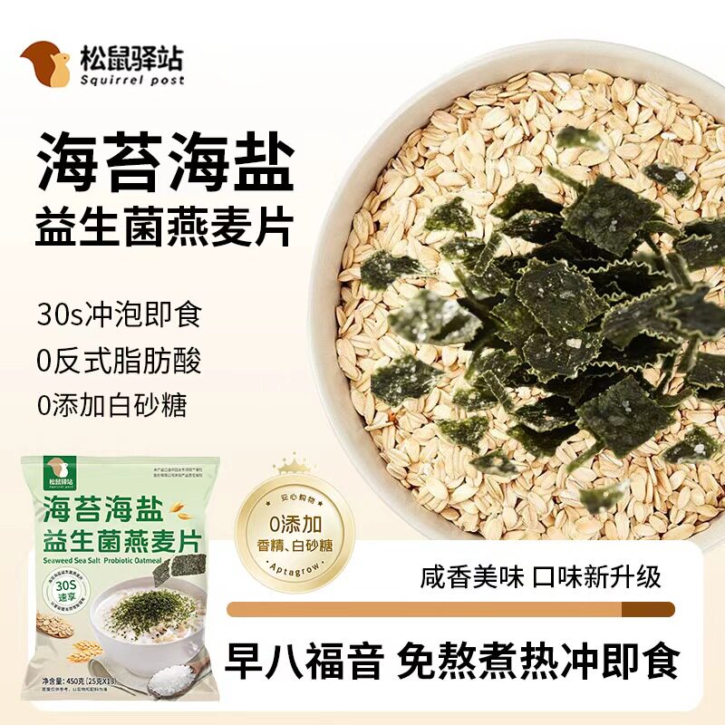 松鼠驿站海苔海盐益生菌燕麦片冲饮麦片学生营养代餐饱腹早餐冲泡