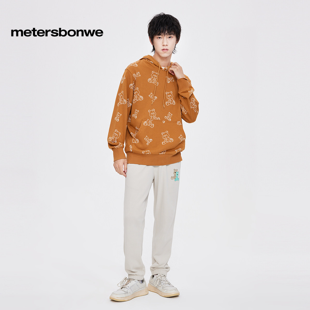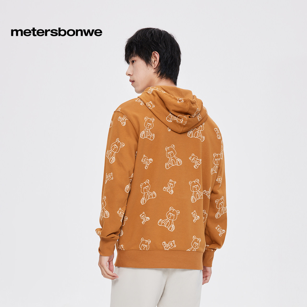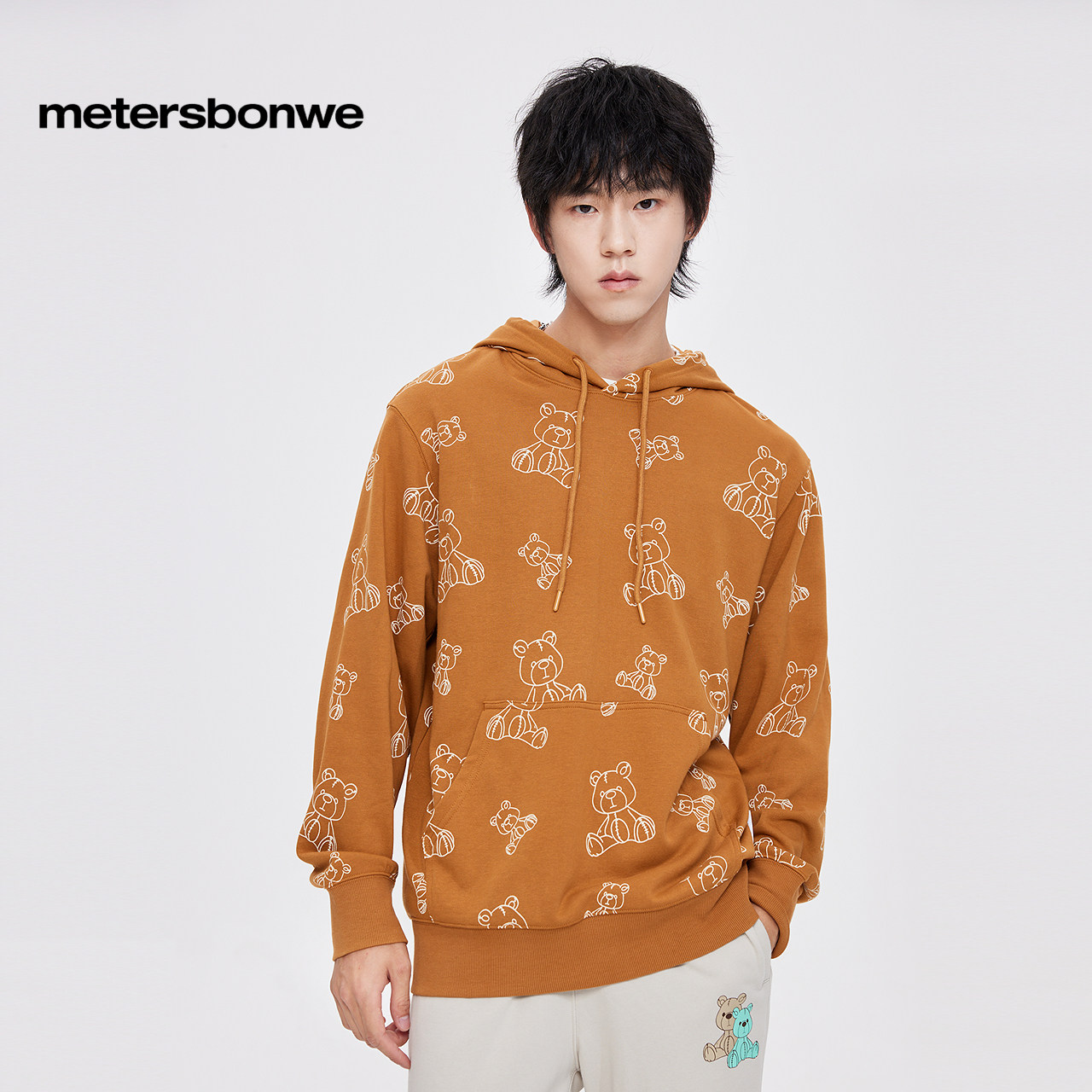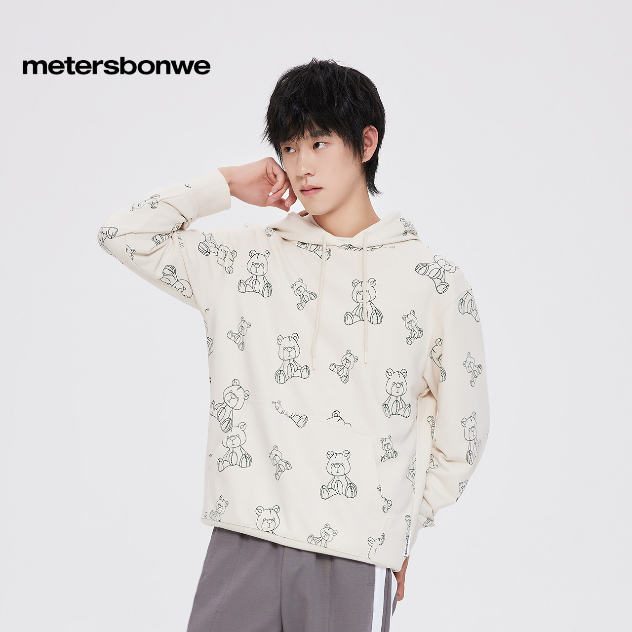 美特斯邦威连帽卫衣男趣味新潮小熊满印宽松落肩上衣休闲舒适百搭