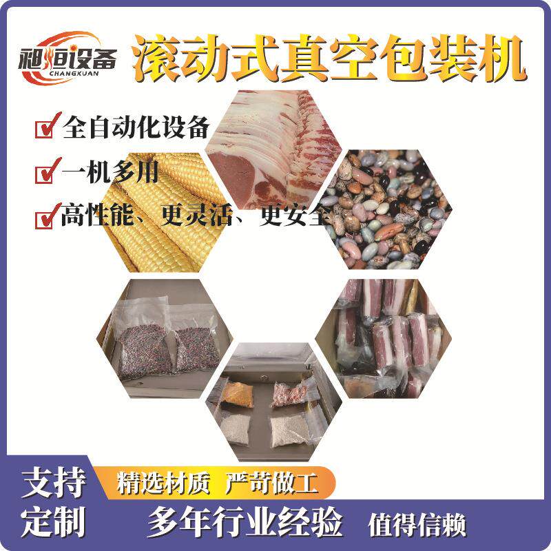 连续滚动式真空包装机年糕豆干腊肠猪蹄玉米鸡翅鱼皮粽子大米海参