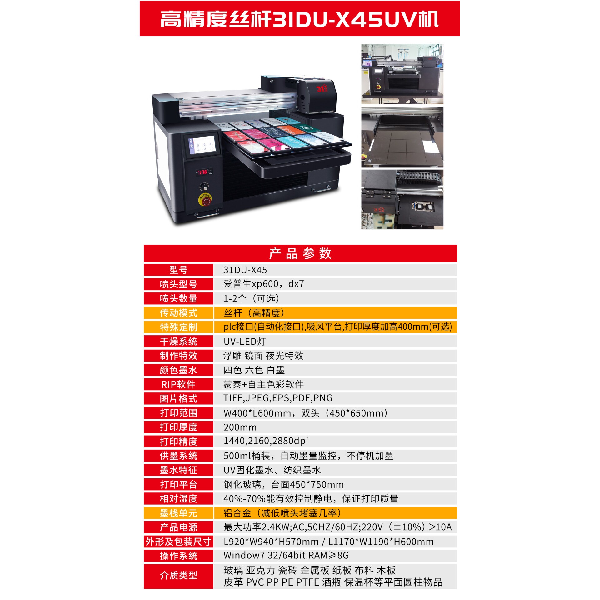 uv打印机小型门把手铝合金窗户框子防盗门热水器宝剑哑铃装饰设备