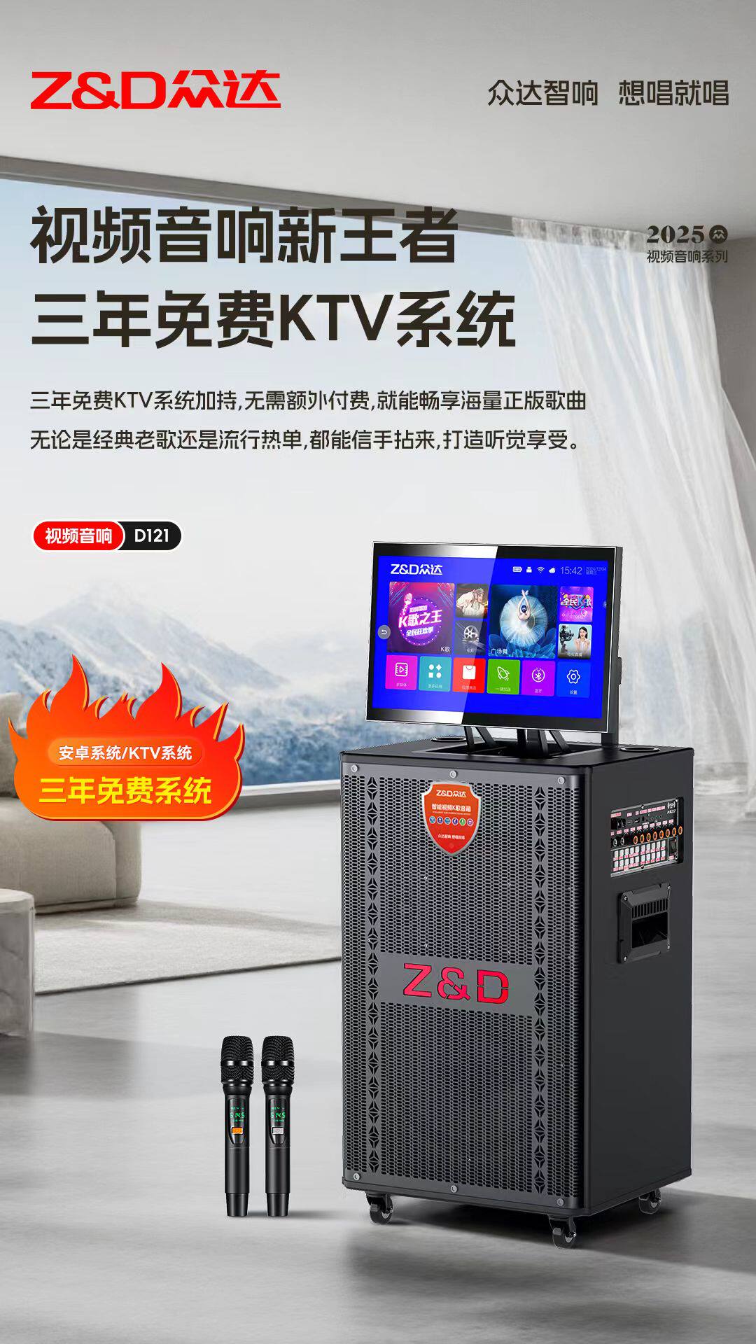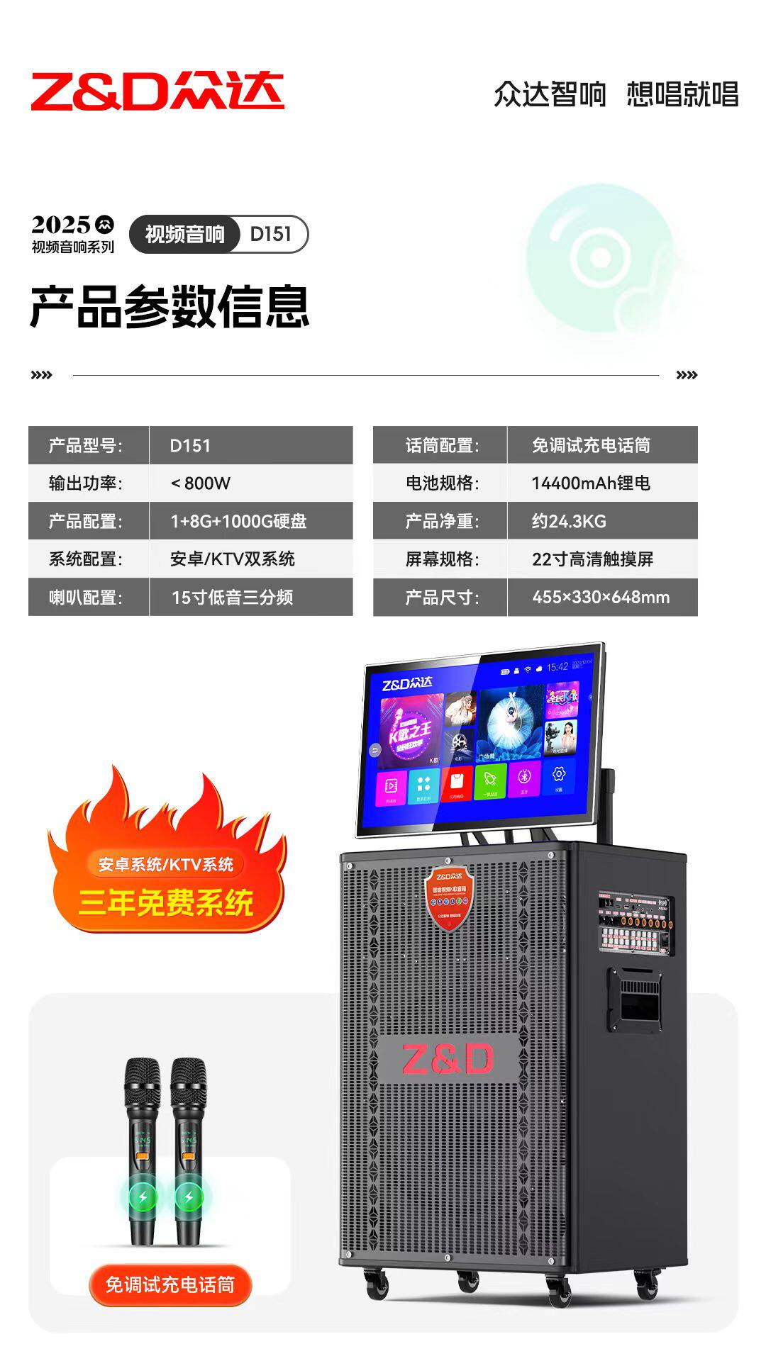 众达音响D151视频音响广场舞户外家庭KTV移动拉杆KTV音响