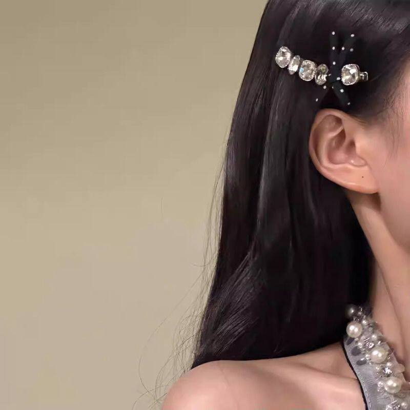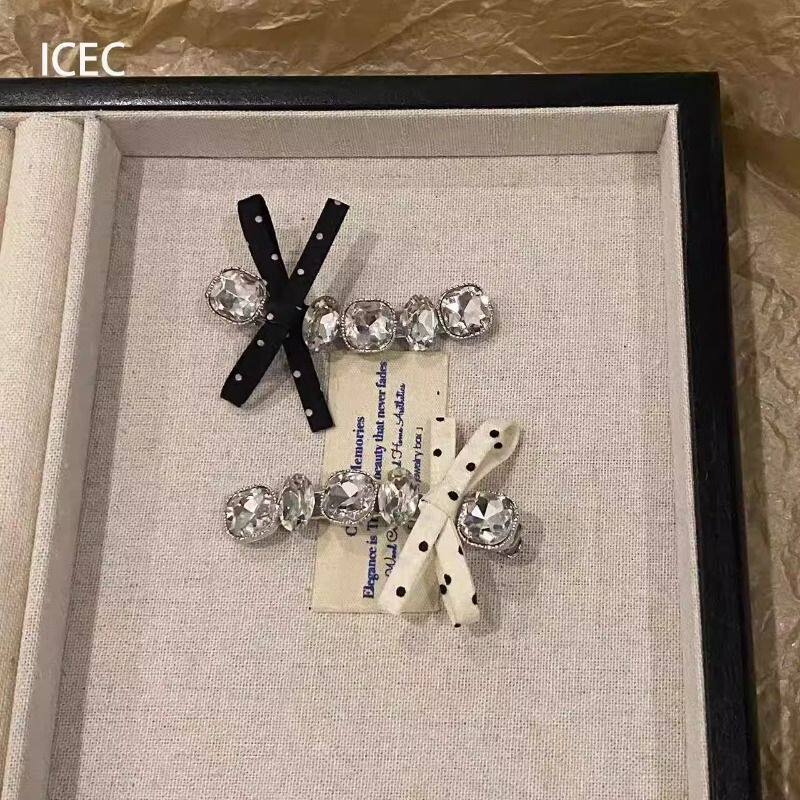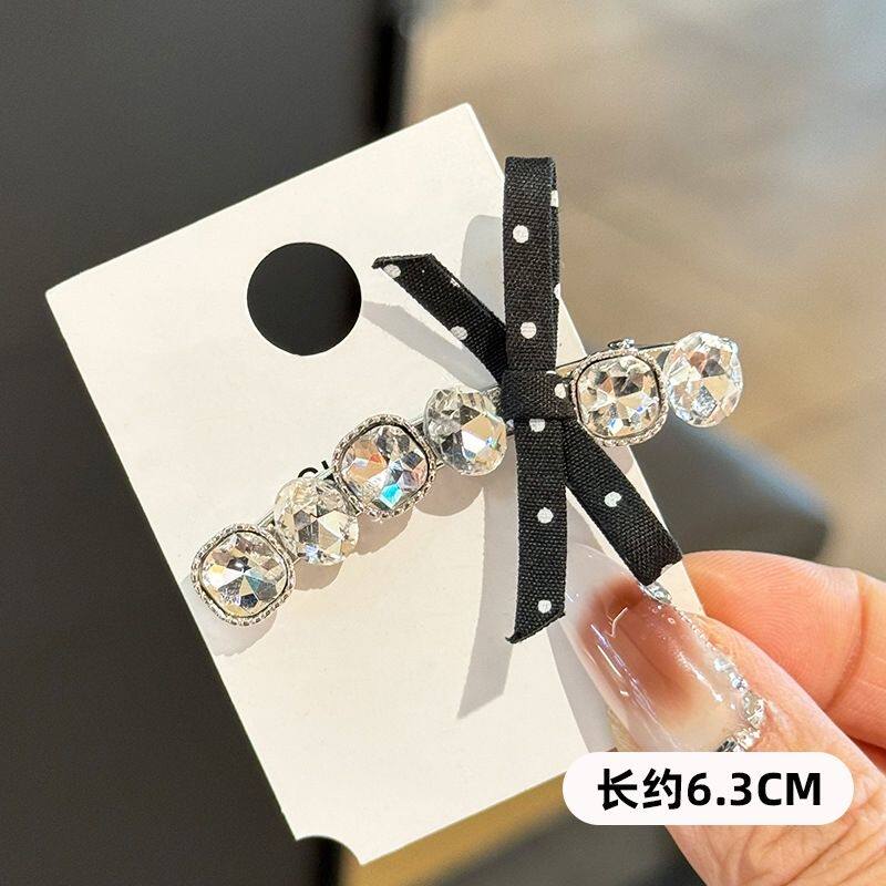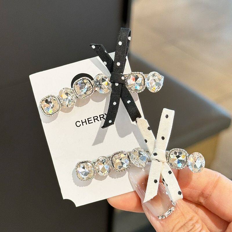 发夹韩国ins新款黑白波点蝴蝶结水钻时尚甜美刘海夹侧边夹发饰女