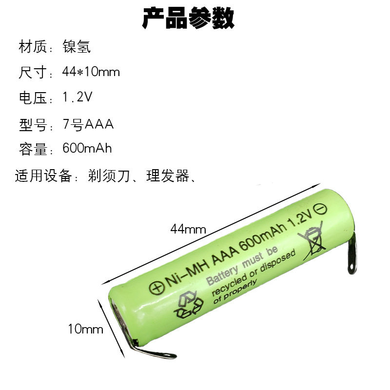 镍氢7号可充电电池 AAA 600mAh 1.2V 理发器剃须刮胡刀电池带焊片