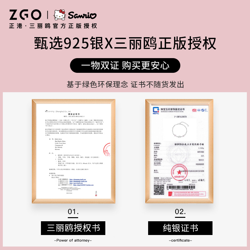 正港ZGOx三丽鸥HelloKitty系列手链女生纯银轻奢小众精致生日礼物