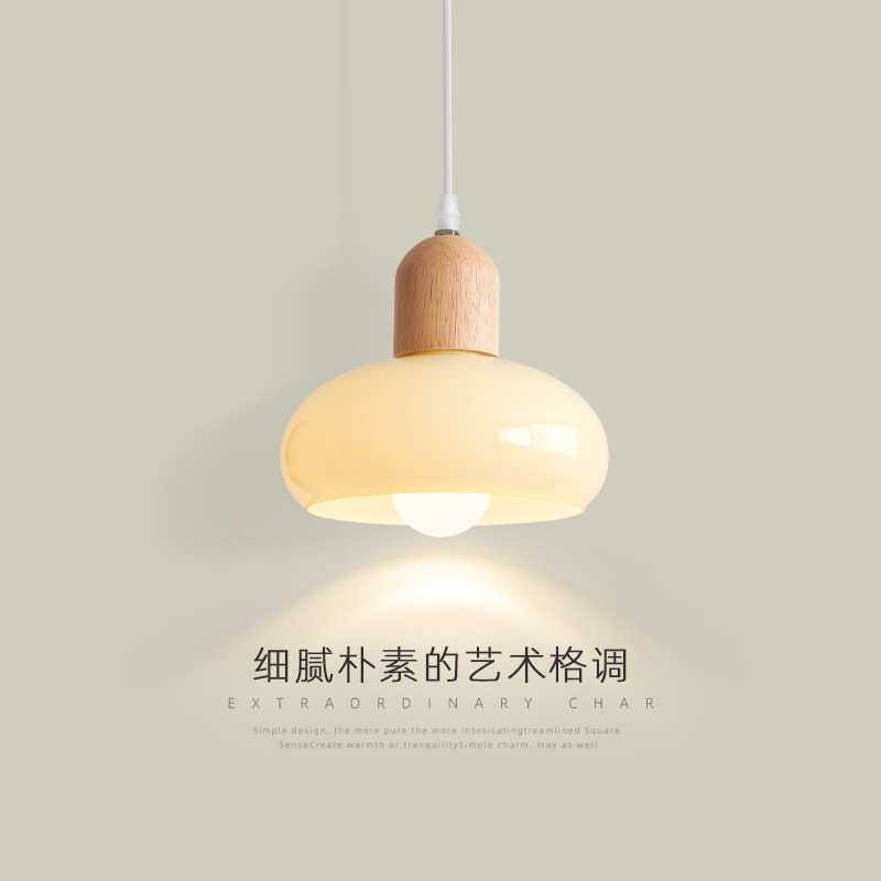 床头小吊灯现代简约原木奶油风餐桌吧台灯名宿房间实木玻璃吊线灯