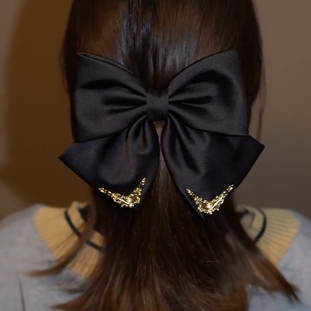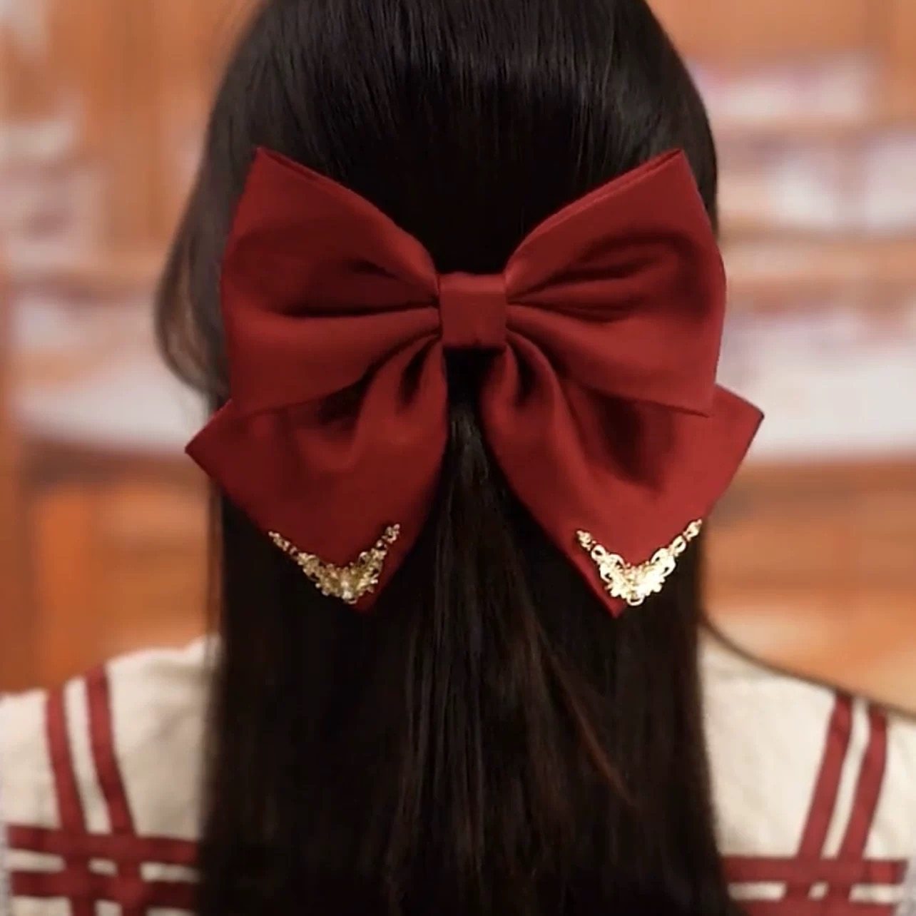 轻奢高级感发夹女法式复古大蝴蝶结红色顶夹横夹发卡短发卷发水钻