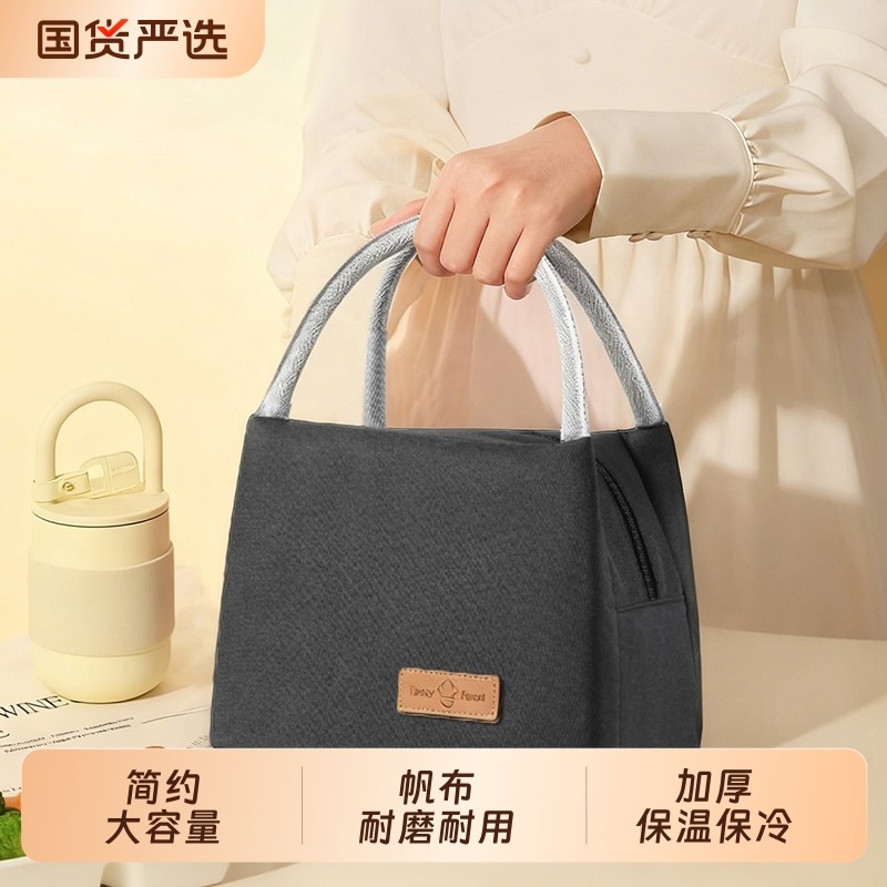 帆布手提包小巧百搭上班族便当包新款学生大容量饭盒袋简约手提袋