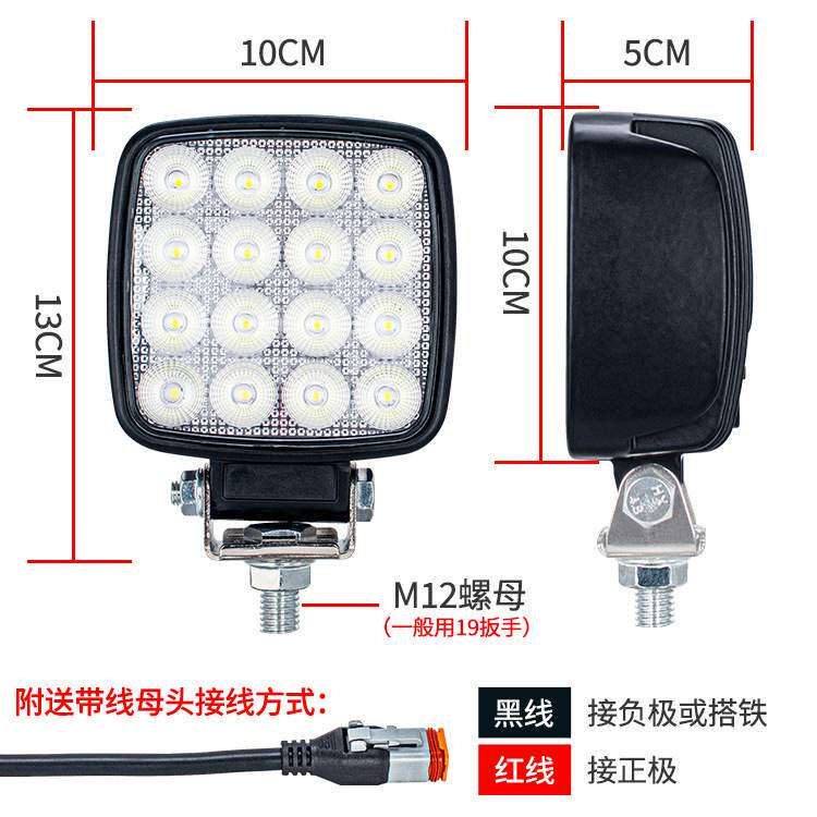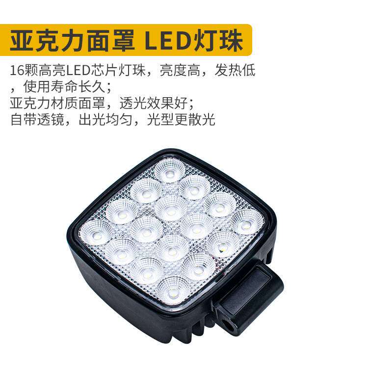 带插头16珠高亮挖机大臂灯加厚铝壳12-80V叉车大灯工程机械工作灯