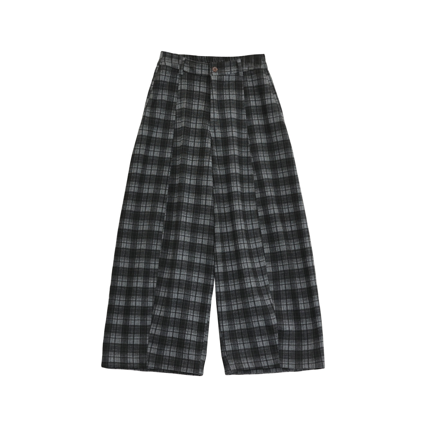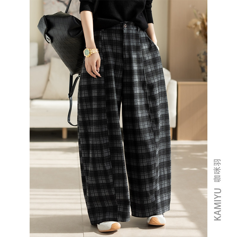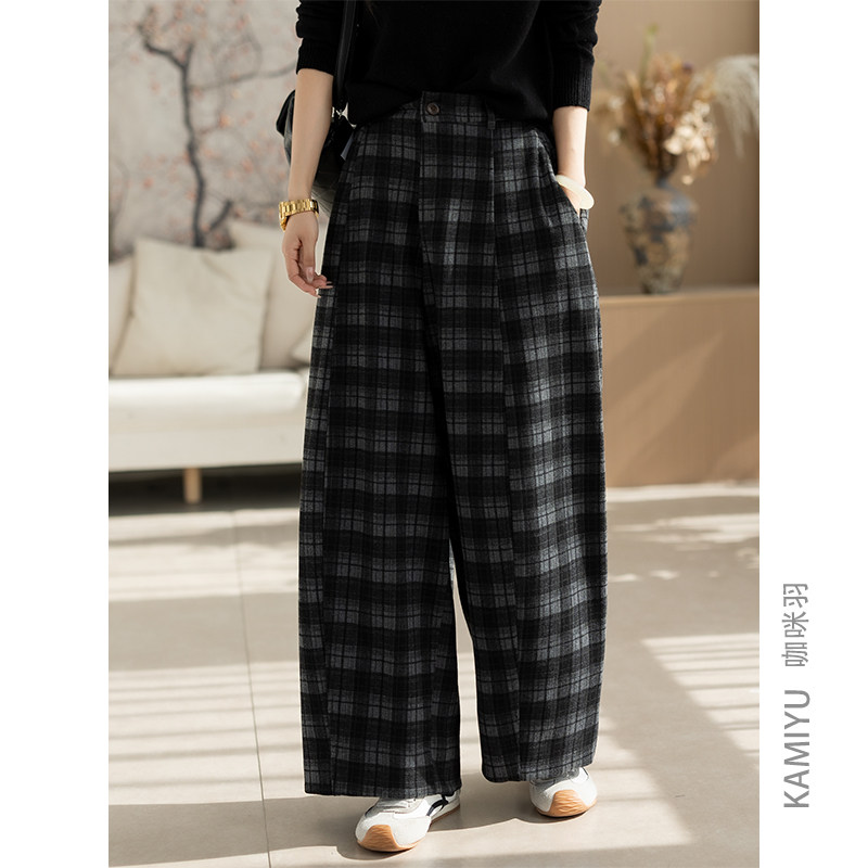 咖咪羽格子休闲裤女秋冬新款直筒百搭宽松文艺棉质流行女装裤子