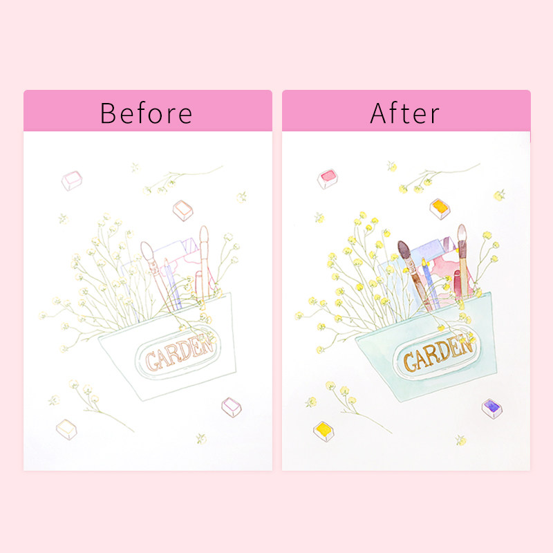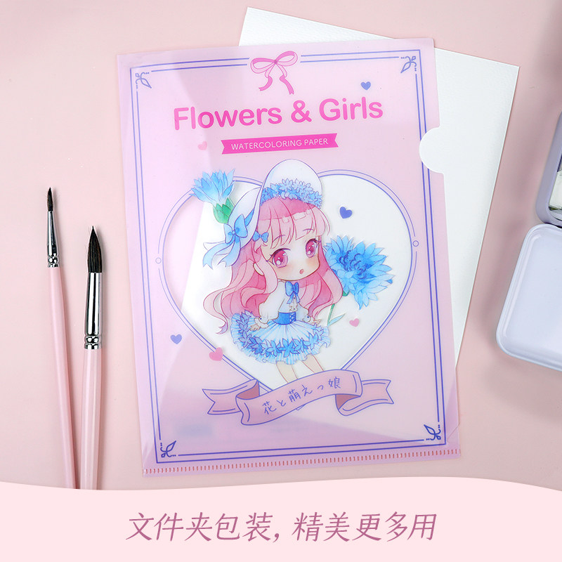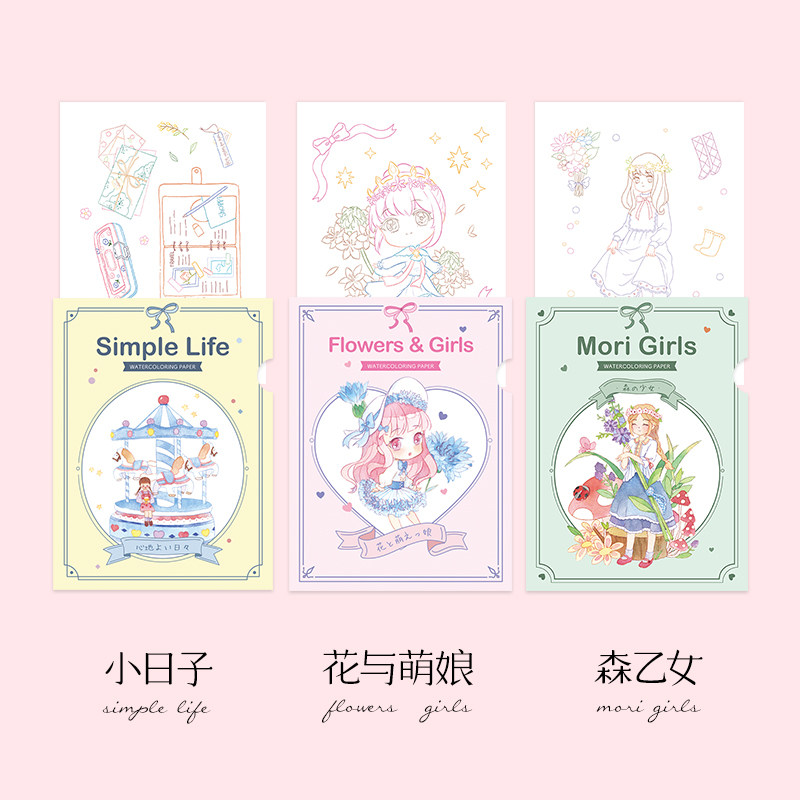 飞乐鸟水彩线稿填色纸花与萌娘森乙女小日子儿童填色涂色画水彩画临摹底稿本上色初学者用绘画色感培养练习