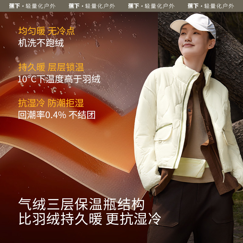 蕉下高弹气绒服女秋新款运动棉衣保暖似羽绒冲锋衣内胆修身短外套