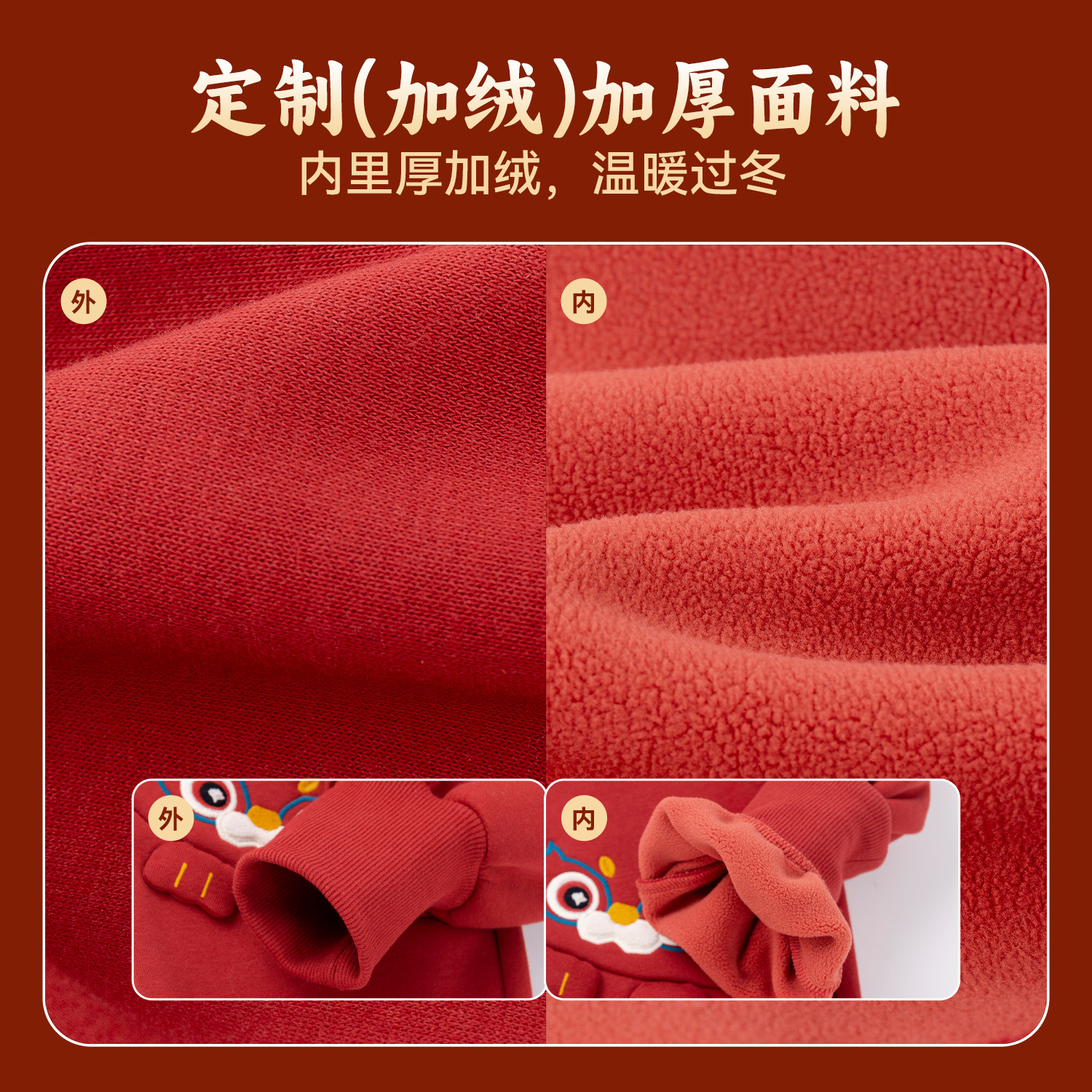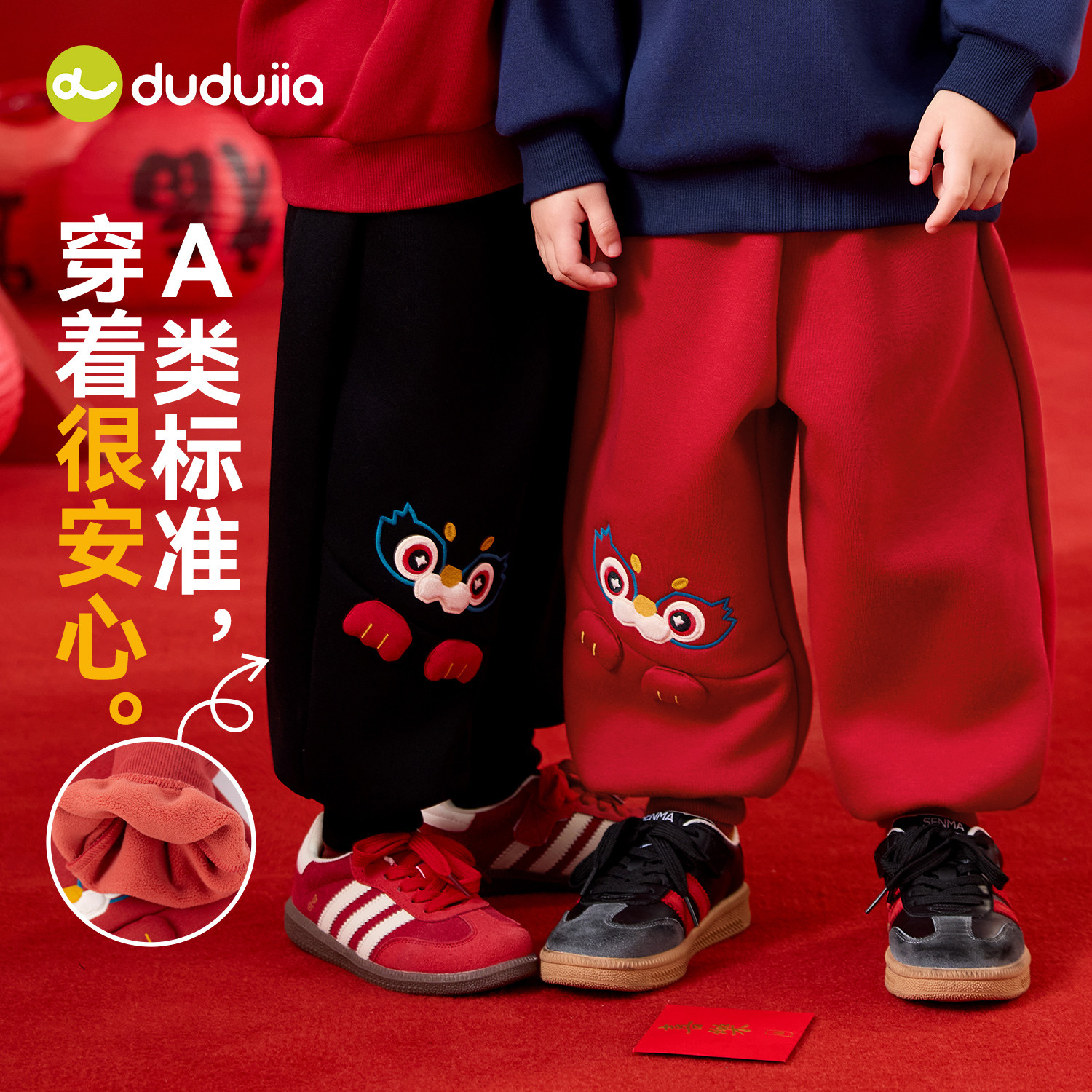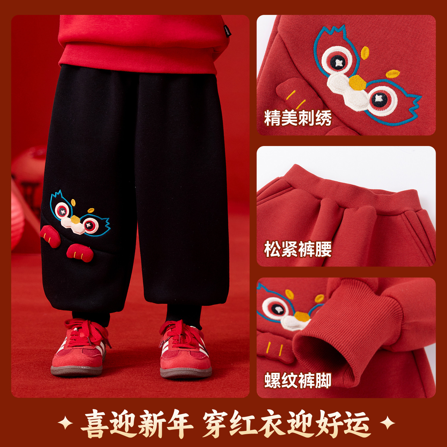 嘟嘟家儿童唐装裤子冬季宝宝拜年服喜庆男童长裤加绒女童年装中式