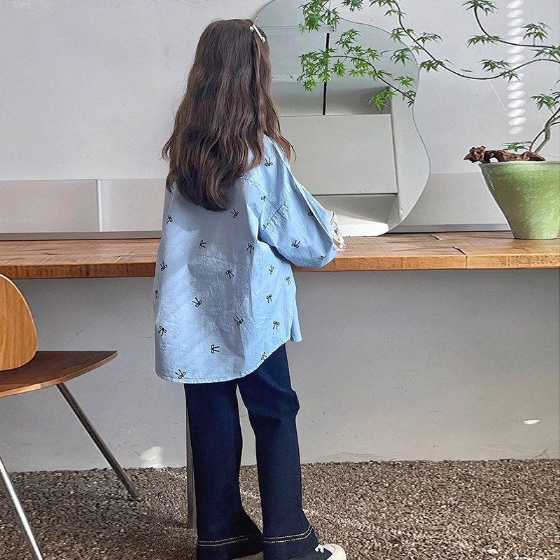 女童韩范洋气衬衣外套春秋款2026新款儿童蝴蝶结休闲慵懒衬衫秋装