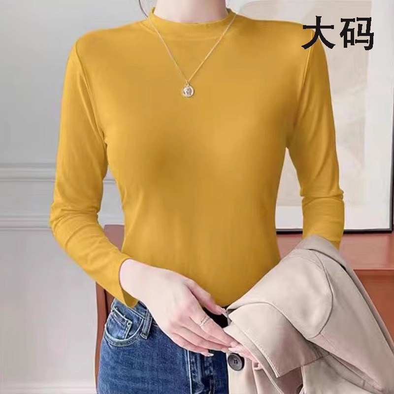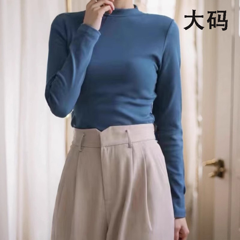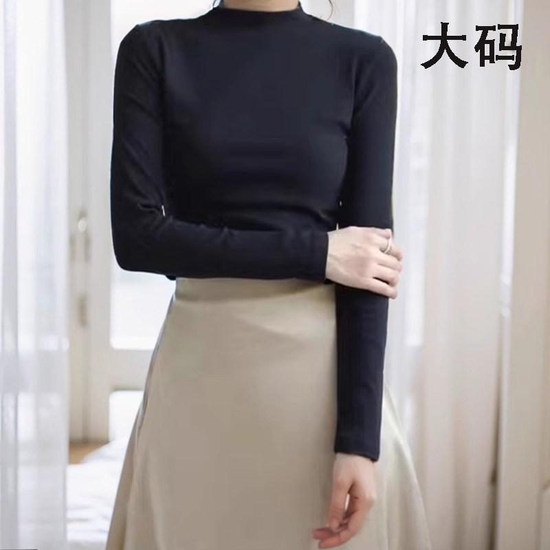 Yuan【绵绵云朵】大码秋冬立领贴身胖mm针织保暖打底衫|内搭bi备