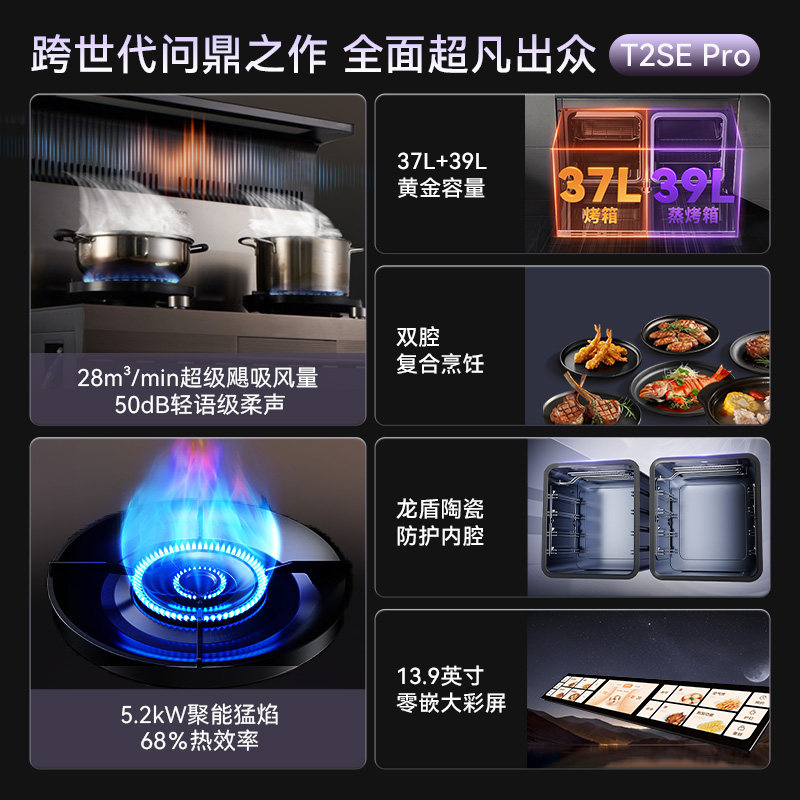 凯度T2SEpro集成灶家用燃气灶变频油烟机蒸烤箱一体