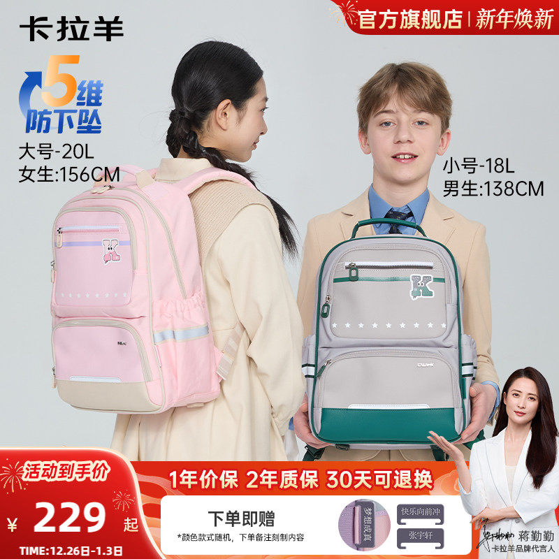 卡拉羊中学生书包减负风琴书包男女生青少年书包小学生书包儿童双肩包男孩大容量女孩防水书包品牌旗舰正品