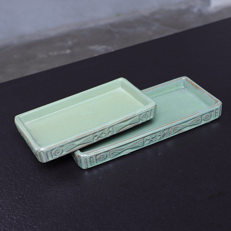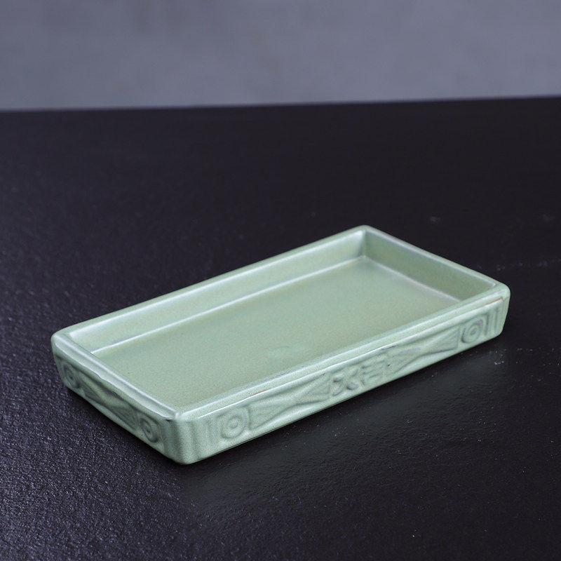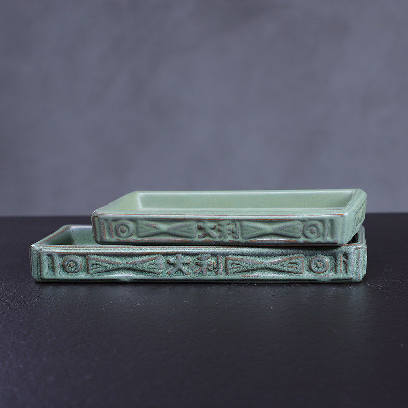 创意陶瓷长方形花盘花器接水垫托盘苔藓球菖蒲底座中式插花打香篆