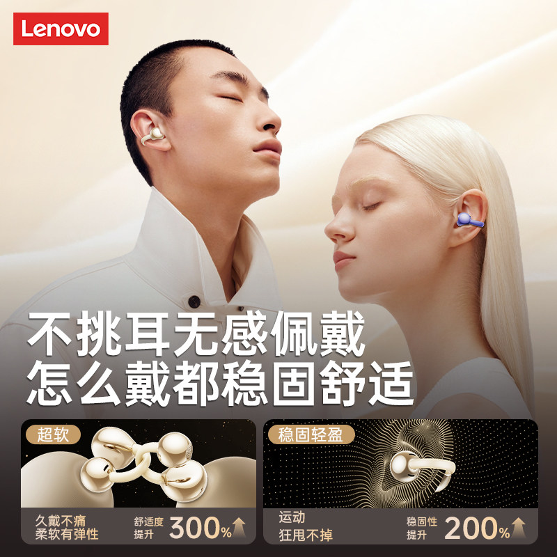 联想气骨传导蓝牙耳机2026新款高音质耳夹式无线运动超长续航通话