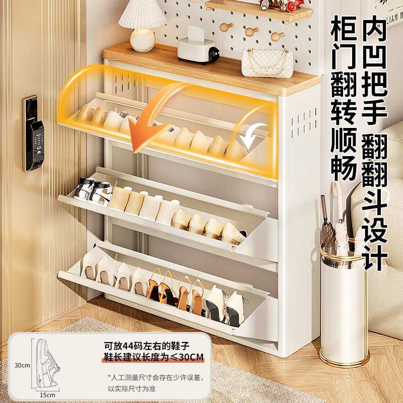 超薄钢制翻斗鞋柜家用门口室内一体靠墙入户玄关柜大容量铁皮鞋柜