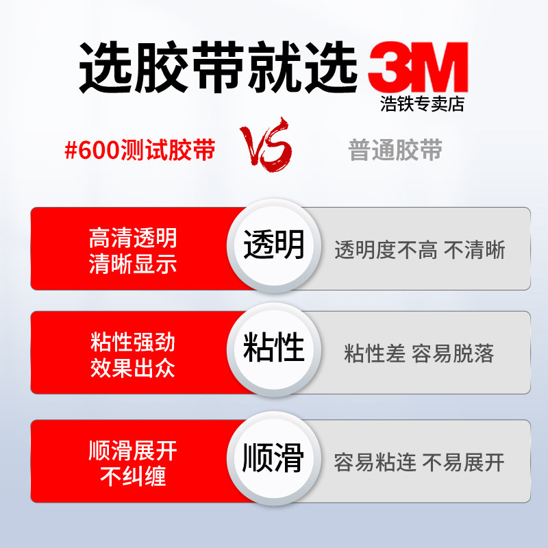 思高原装正品3M 600测试胶带高级透明油墨附着力检测百格测试单面胶耐高温无痕不脱胶强粘性无残胶胶纸